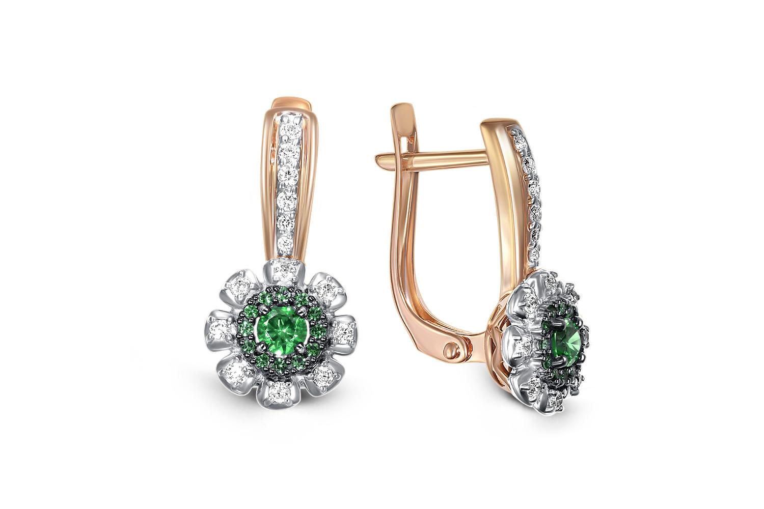 Мастера компании NEWGOLD, приложив всё свое мастерство и искусство, создали для Вас на нашем собственном производстве Серьги Цветы из красного золота с 26 изумрудами и 28 бриллиантами.