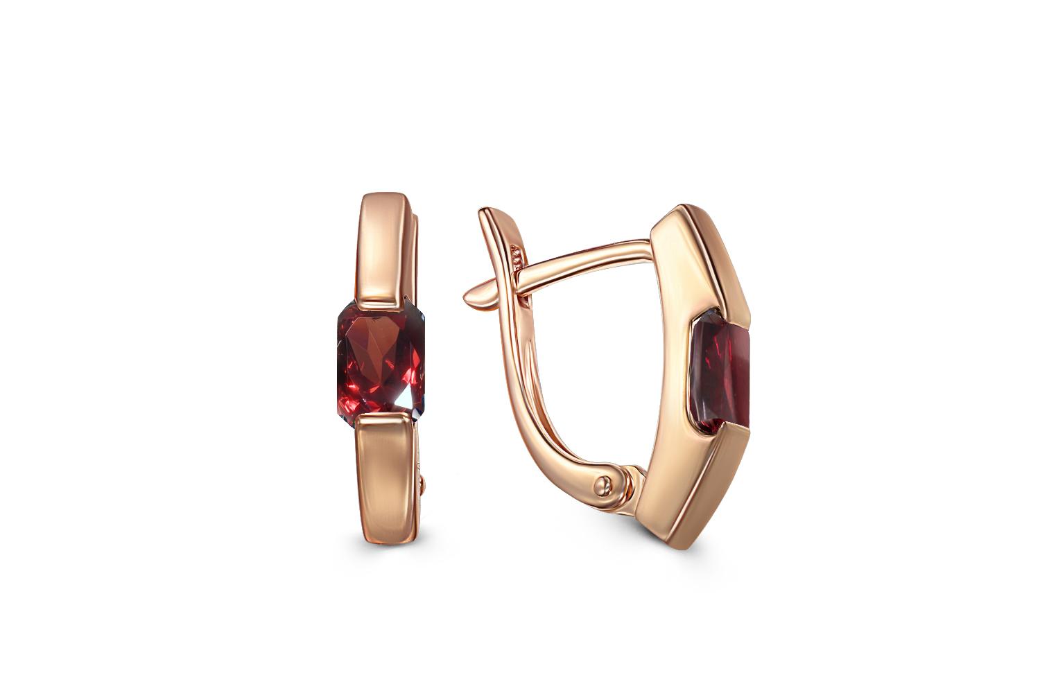 Закажите Серьги из красного золота с 2 гранатами с получением в Москве через курьерскую службу доставки напрямую с нашего производственного склада завода NEWGOLD!