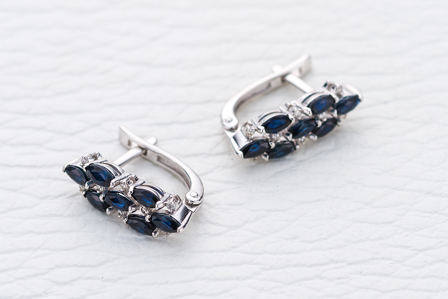 Мастера компании NEWGOLD, приложив всё свое мастерство и искусство, создали для Вас на нашем собственном производстве Серьги из белого золота с 14 сапфирами и 16 бриллиантами.