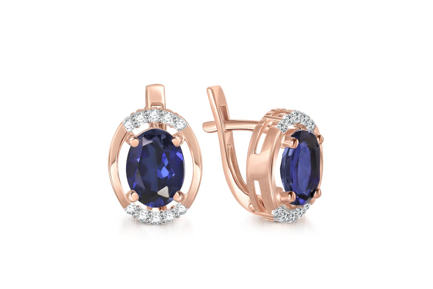 Мастера компании NEWGOLD, приложив всё свое мастерство и искусство, создали для Вас на нашем собственном производстве Серьги из красного золота с 2 сапфирами и 20 бриллиантами.
