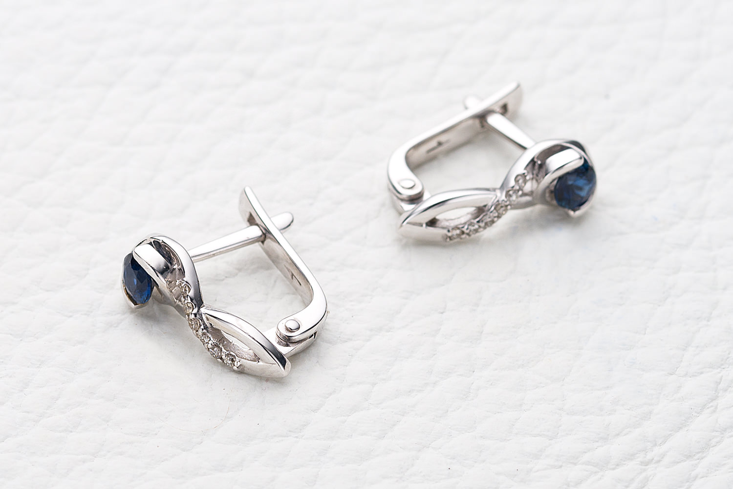Мастера компании NEWGOLD, приложив всё свое мастерство и искусство, создали для Вас на нашем собственном производстве Серьги из белого золота с 2 сапфирами и 12 бриллиантами.