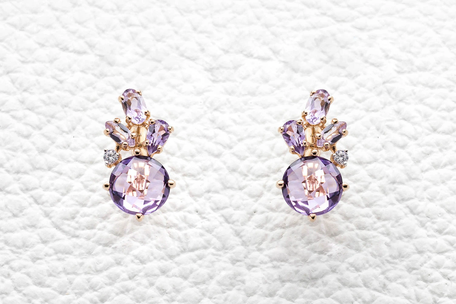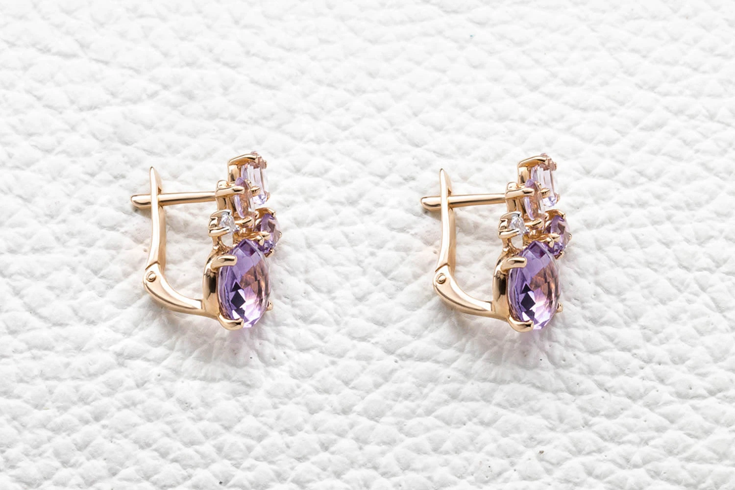 Мастера компании NEWGOLD, приложив всё свое мастерство и искусство, создали для Вас на нашем собственном производстве Серьги из красного золота с аметистами, гранатами и хризолитами.
