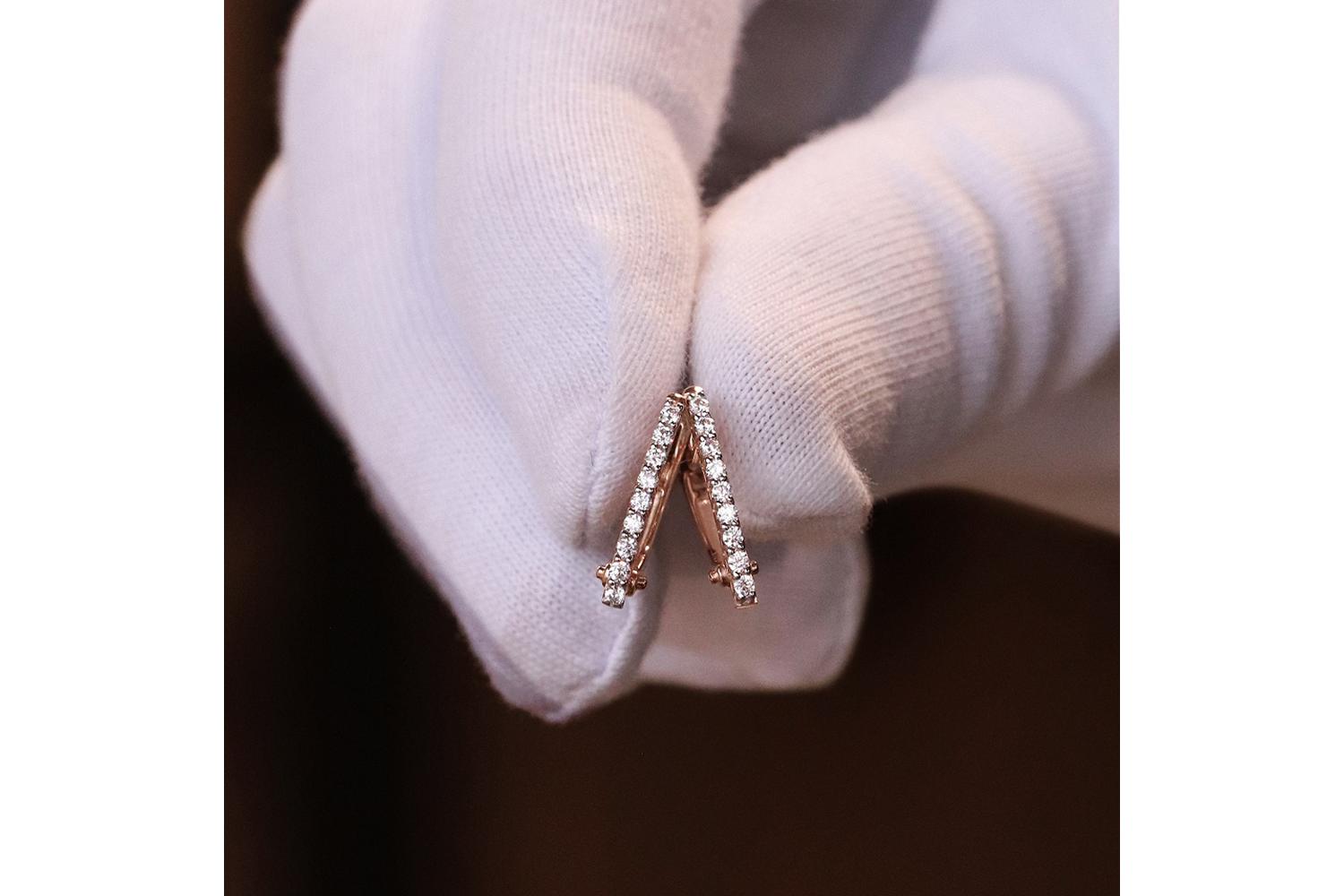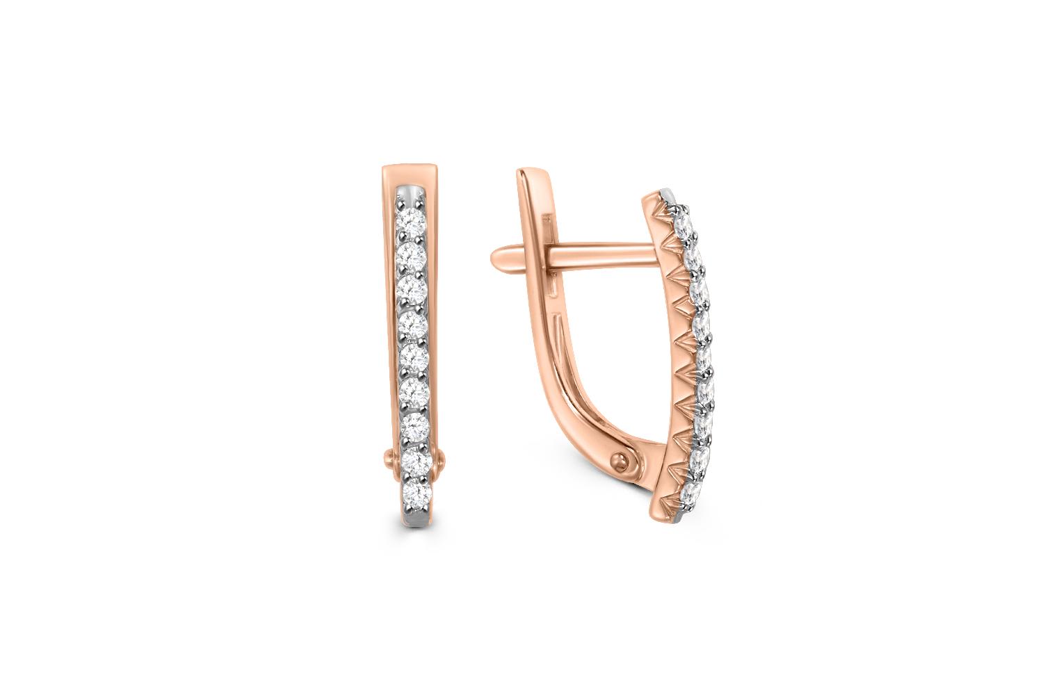 Мастера компании NEWGOLD, приложив всё свое мастерство и искусство, создали для Вас на нашем собственном производстве Серьги Дорожки из красного золота с 18 фианитами.