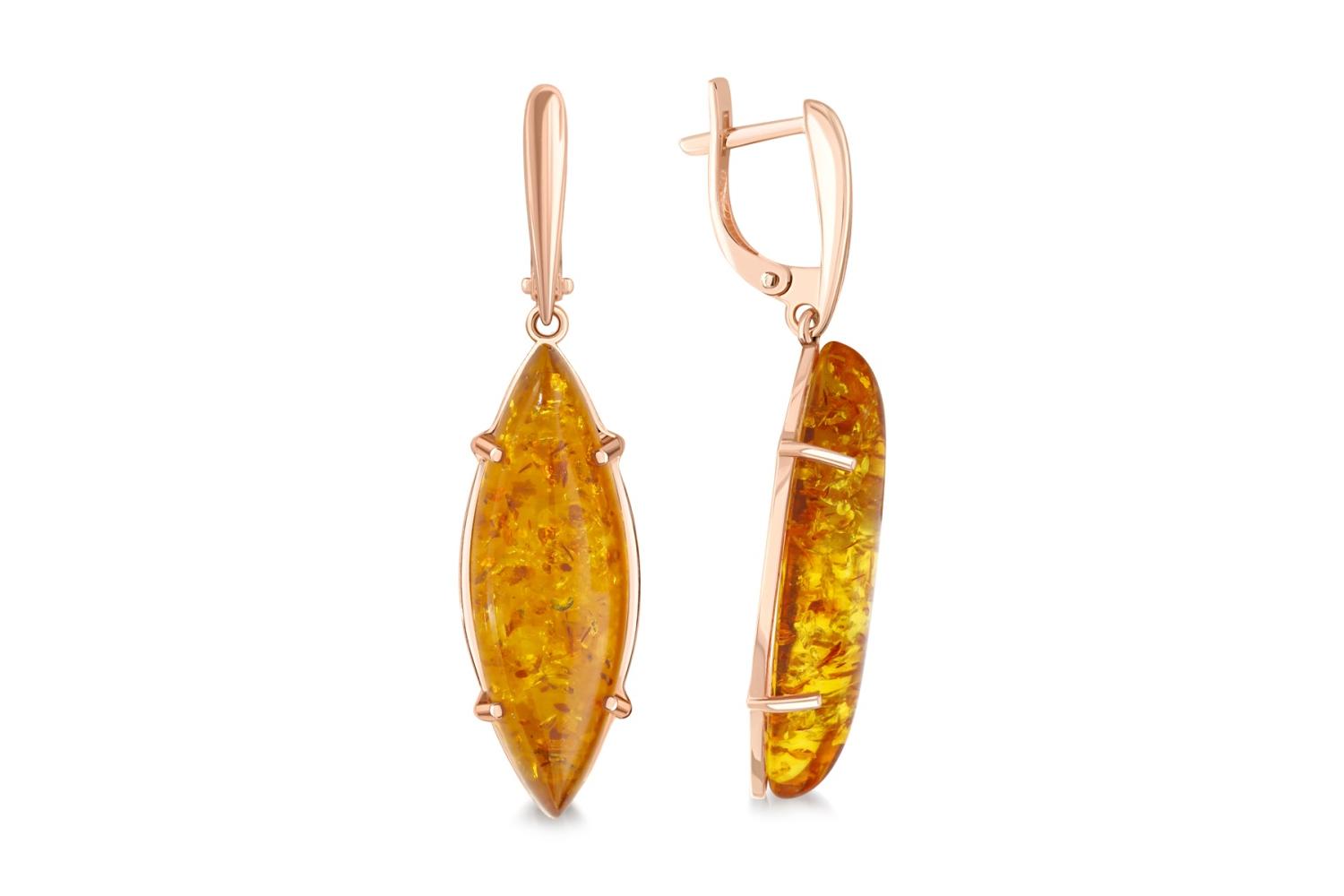 Мастера компании NEWGOLD, приложив всё свое мастерство и искусство, создали для Вас на нашем собственном производстве Серьги из красного золота с янтарём.