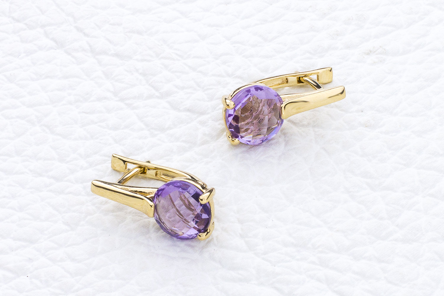 Мастера компании NEWGOLD, приложив всё свое мастерство и искусство, создали для Вас на нашем собственном производстве Серьги из жёлтого золота с 2 аметистами.