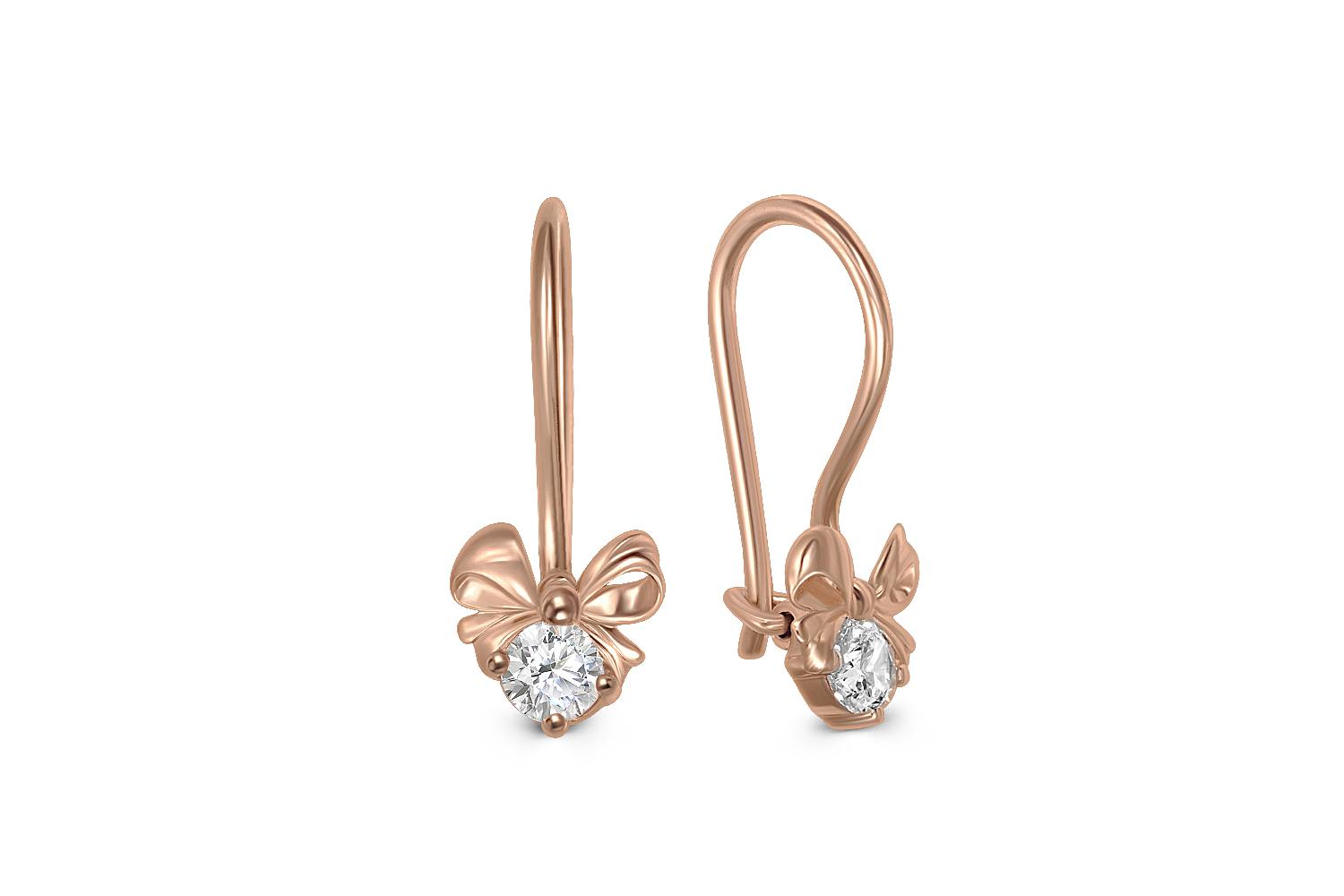 Детские серьги Банты с 2 фианитами из красного золота - это идеальное украшение для маленьких модниц, которые хотят выглядеть стильно и ярко. Серьги выполнены из красного золота 585 пробы и украшены сверкающими фианитами, которые придают изделию особую привлекательность. Серьги имеют универсальный размер, который подходит для большинства детских ушек. Французский замок - замок не мешает даже при круглосуточной носке, в таких серьгах можно спать, тонкая застежка почти невесома.