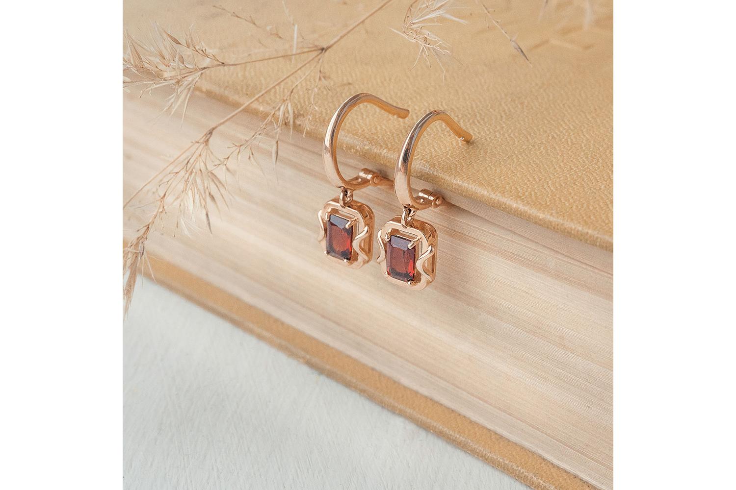 Мастера компании NEWGOLD, приложив всё свое мастерство и искусство, создали для Вас на нашем собственном производстве Серьги из красного золота с 2 гранатами.