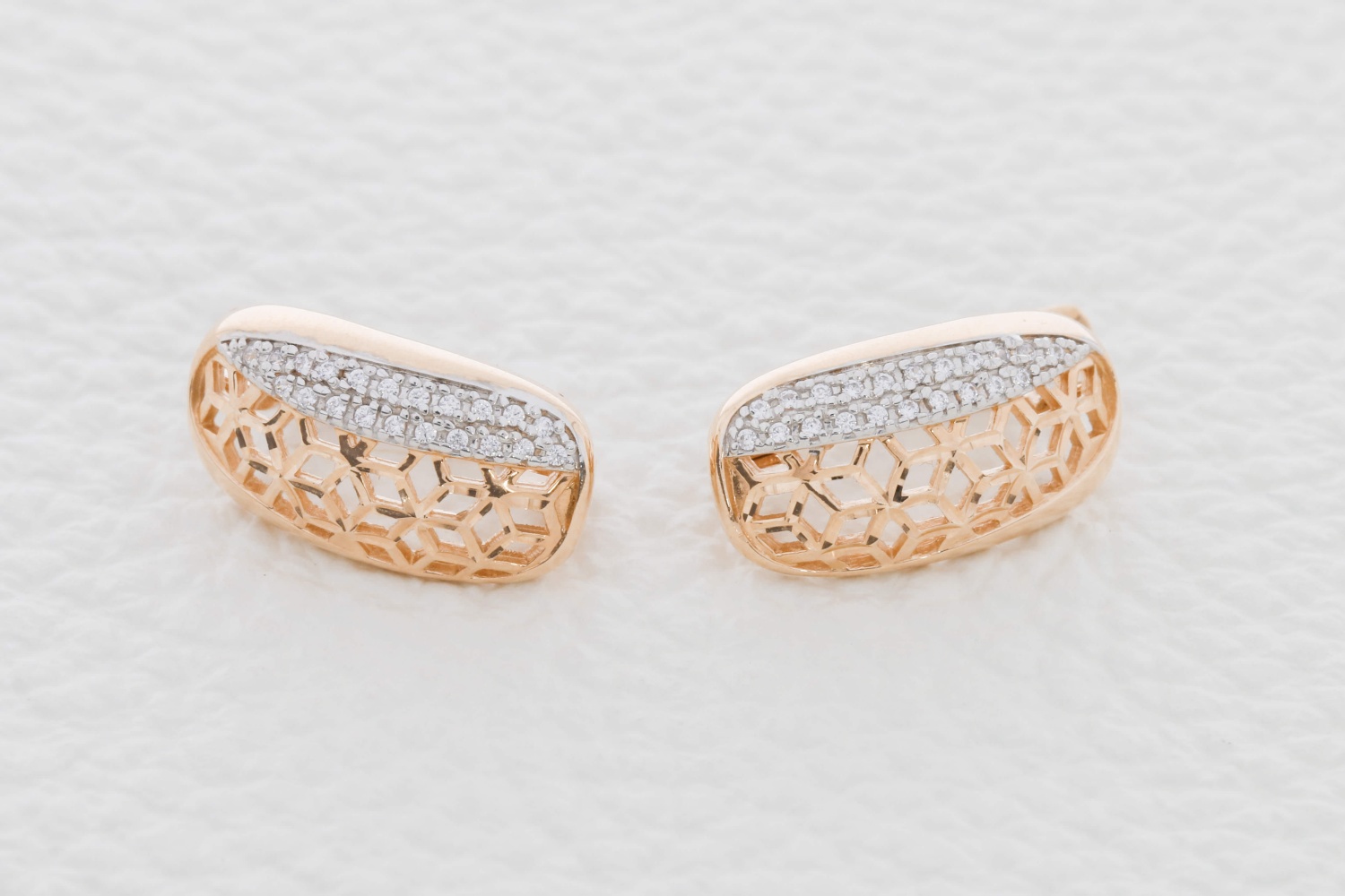 Мастера компании NEWGOLD, приложив всё свое мастерство и искусство, создали для Вас на нашем собственном производстве Серьги из красного золота с 42 фианитами.