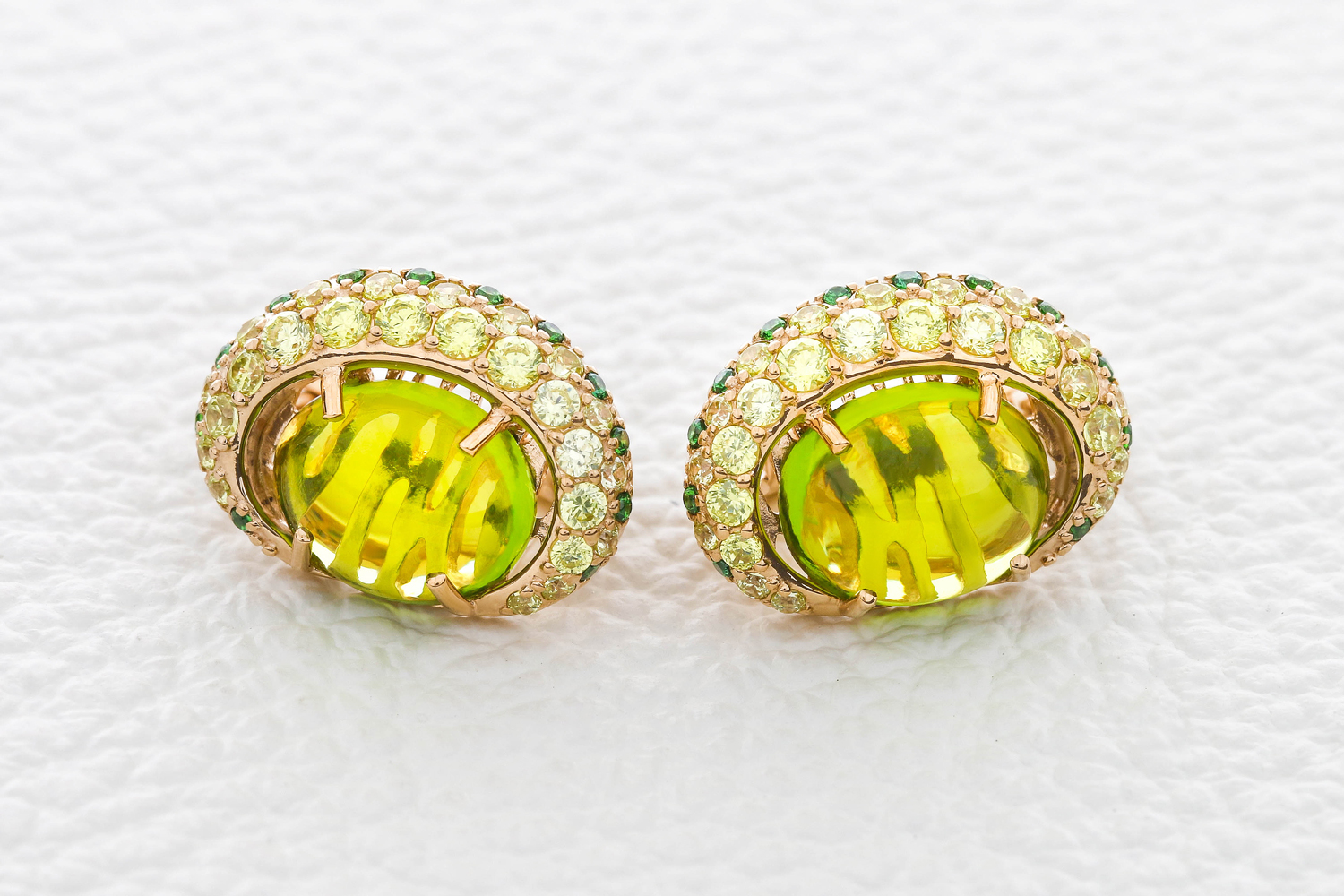 Мастера компании NEWGOLD, приложив всё свое мастерство и искусство, создали для Вас на нашем собственном производстве Серьги из красного золота с 2 кварцами и 76 фианитами.