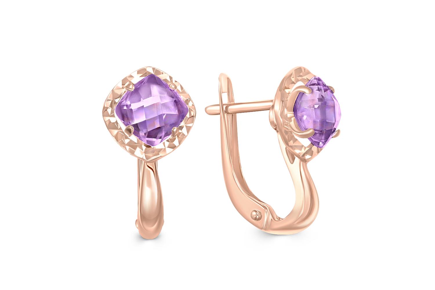 Мастера компании NEWGOLD, приложив всё свое мастерство и искусство, создали для Вас на нашем собственном производстве Серьги из красного золота с 2 аметистами.