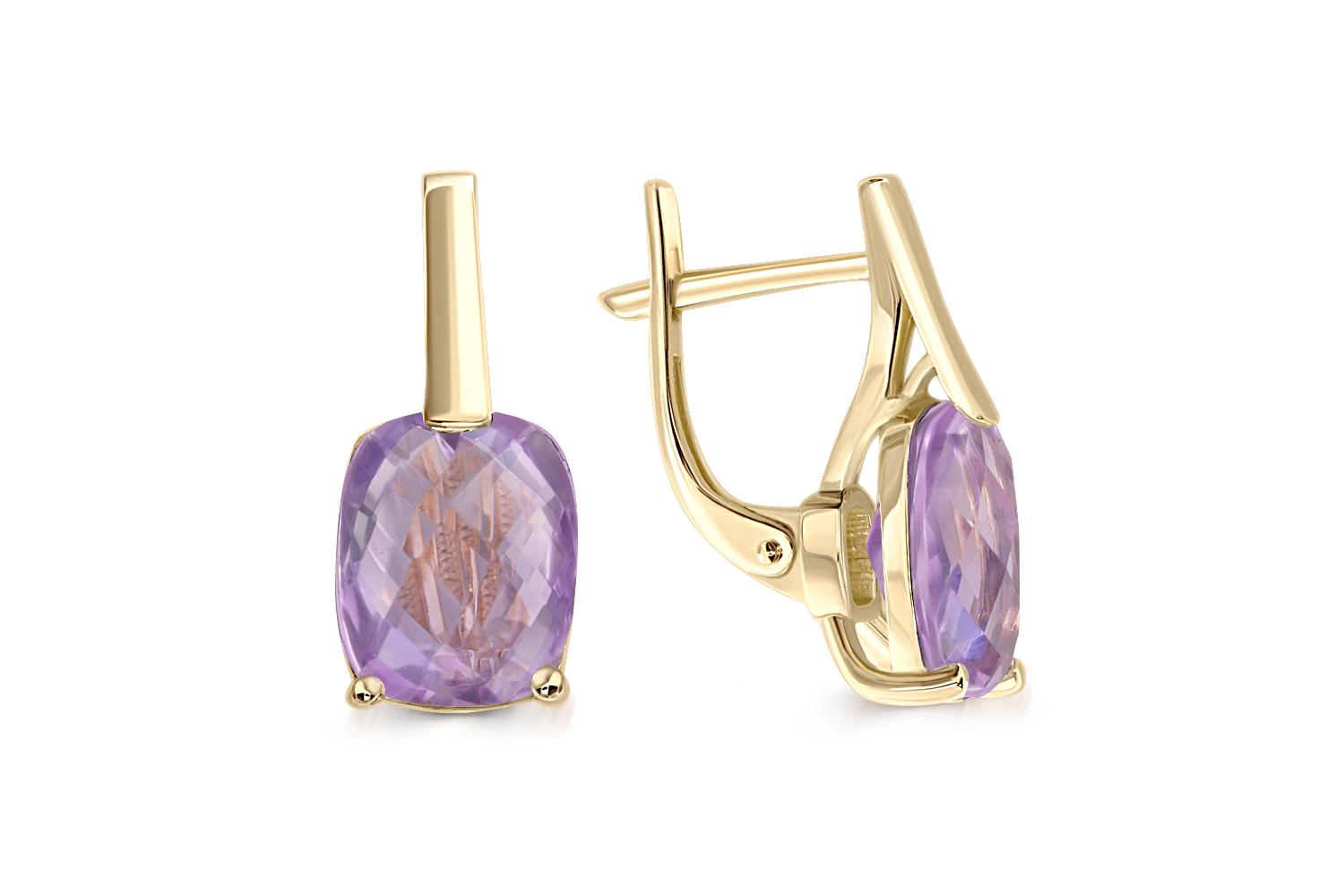 Мастера компании NEWGOLD, приложив всё свое мастерство и искусство, создали для Вас на нашем собственном производстве Серьги из жёлтого золота с 2 аметистами.