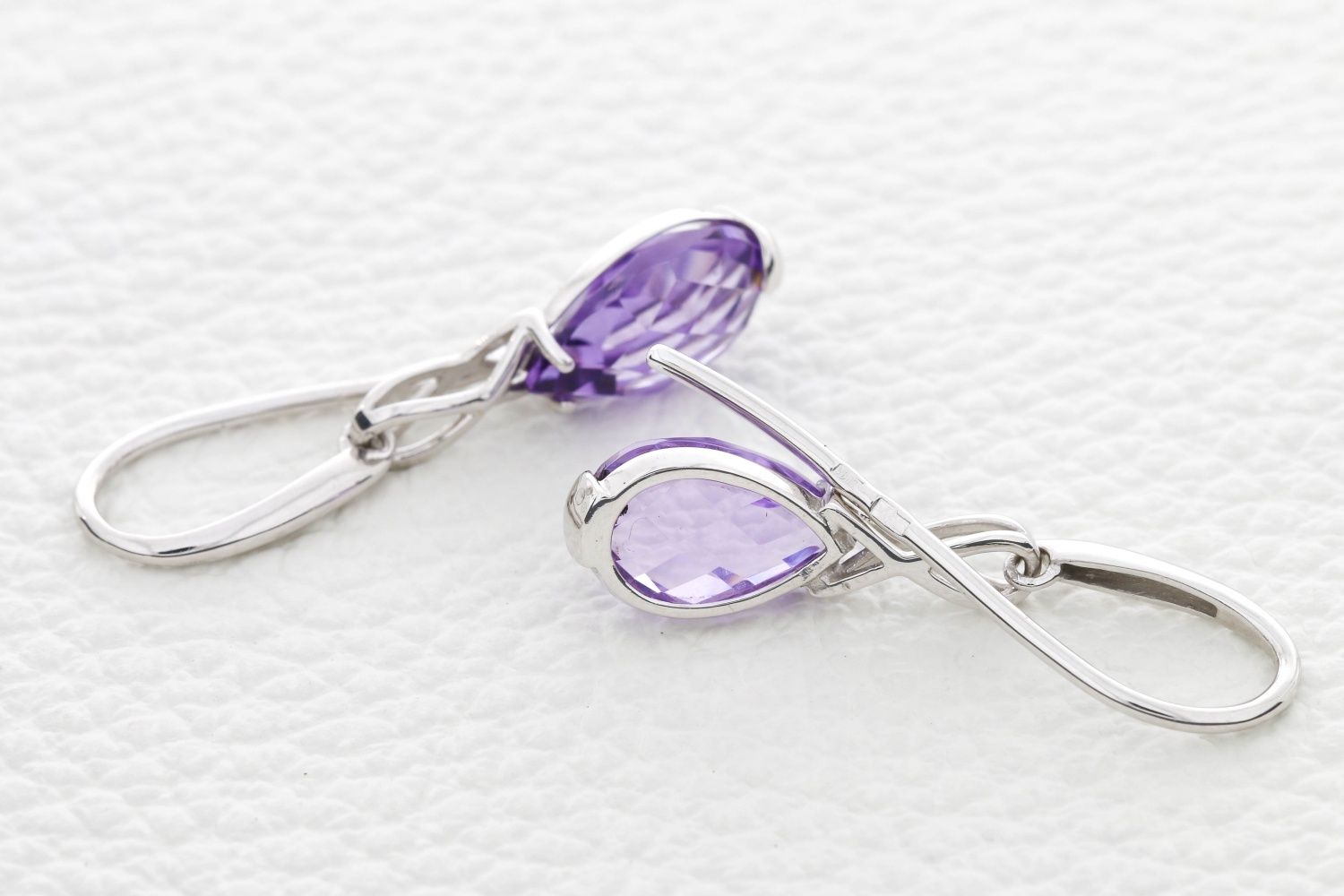 Мастера компании NEWGOLD, приложив всё свое мастерство и искусство, создали для Вас на нашем собственном производстве Серьги из белого золота с 2 аметистами.