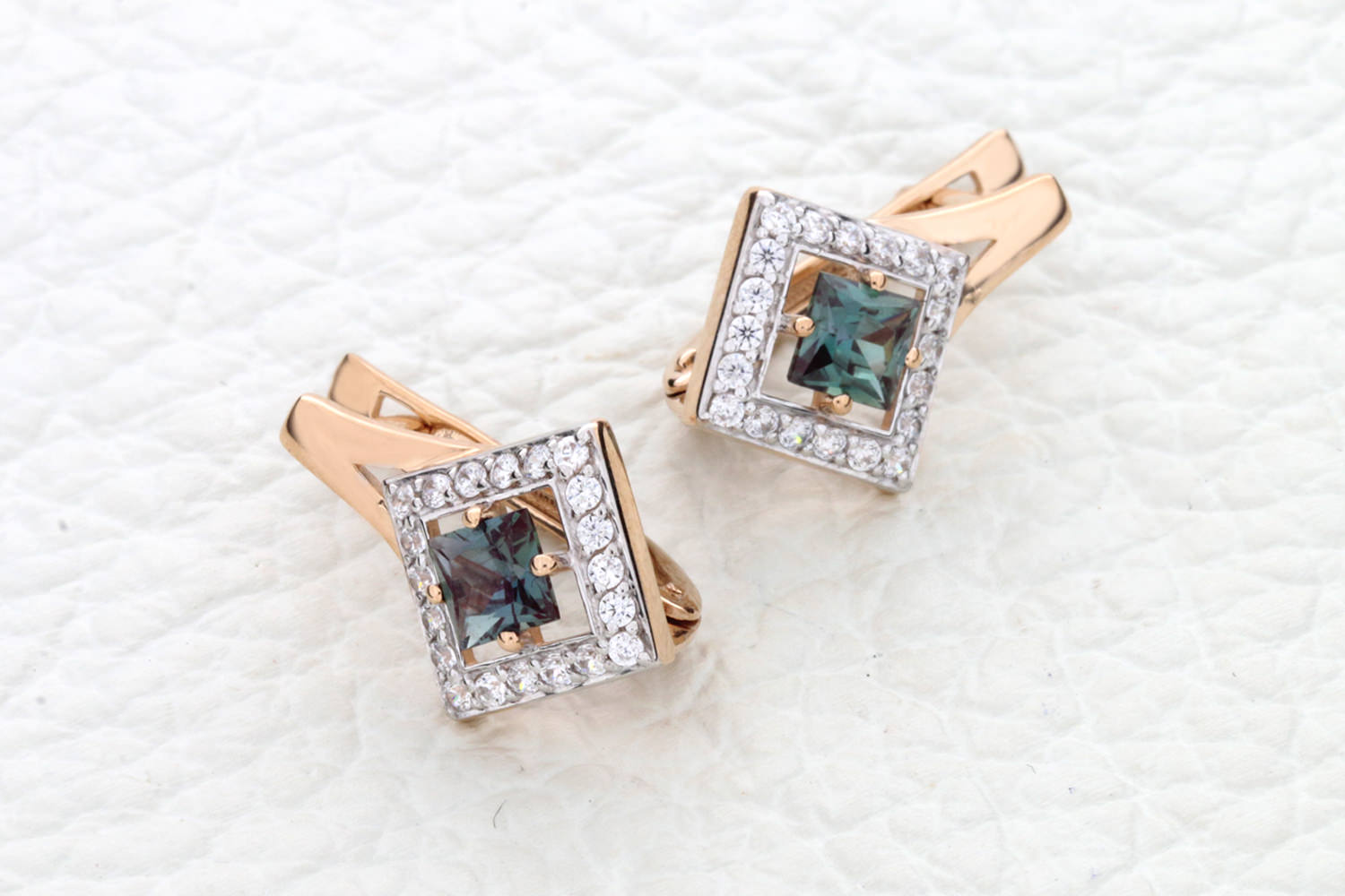 Мастера компании NEWGOLD, приложив всё свое мастерство и искусство, создали для Вас на нашем собственном производстве Серьги из красного золота с 2 александритами и 40 фианитами.