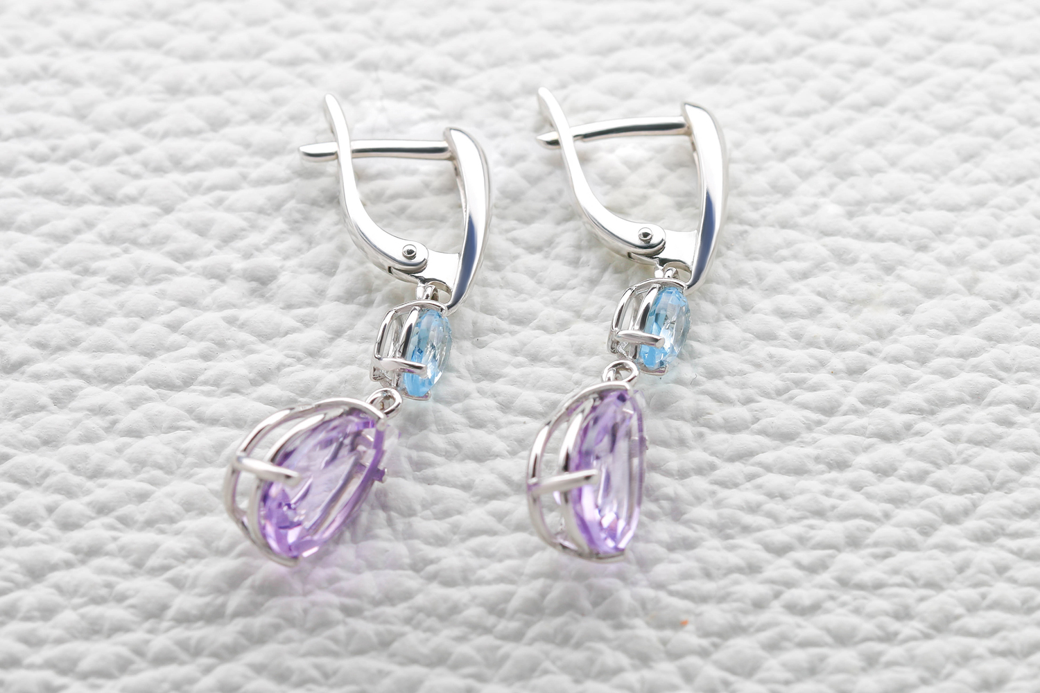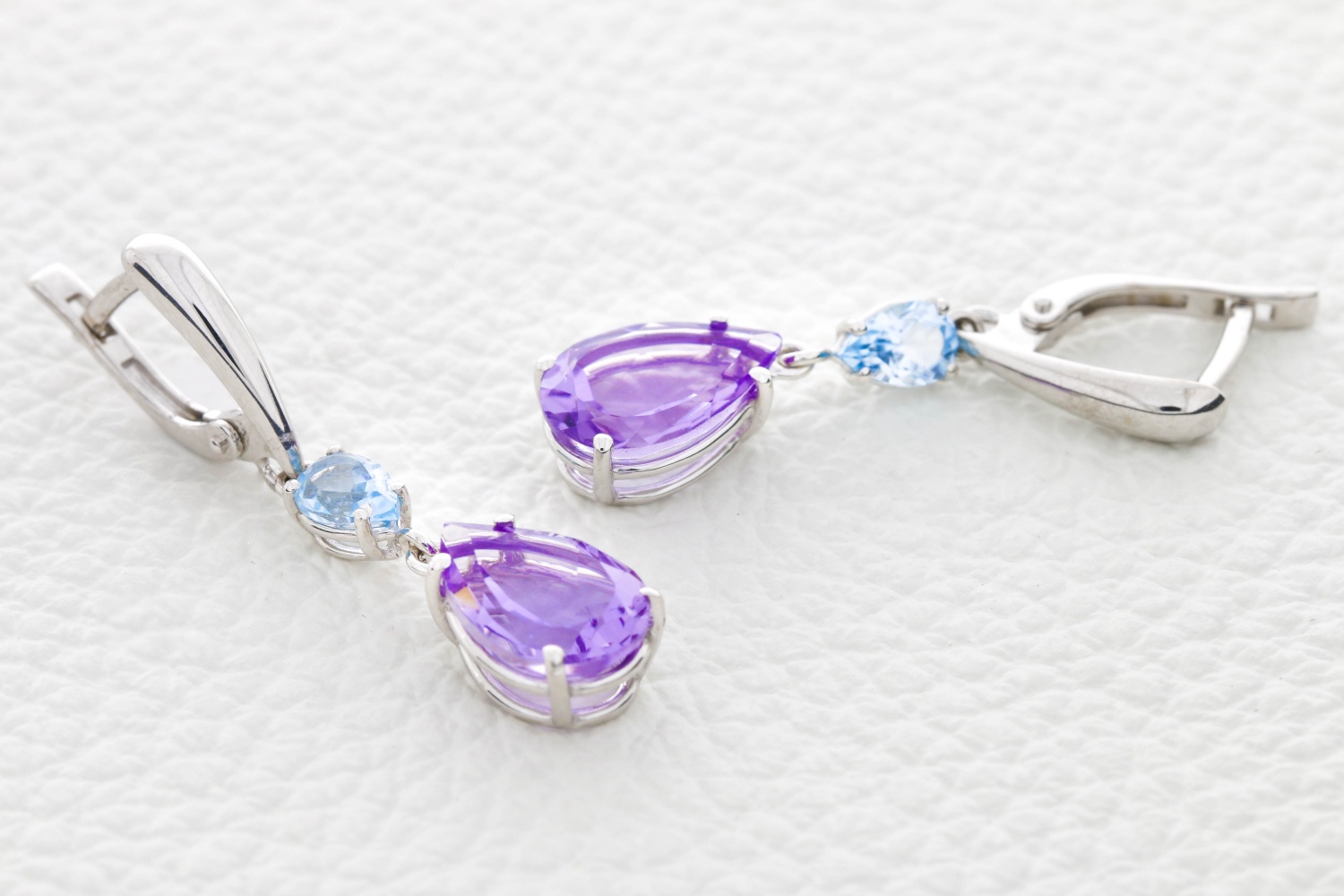 Аметист натуральный, количество 2 шт., огранка груша, размер 12ˣ8 ; Топаз Sky натуральный, количество 2 шт., огранка груша, размер 6ˣ4