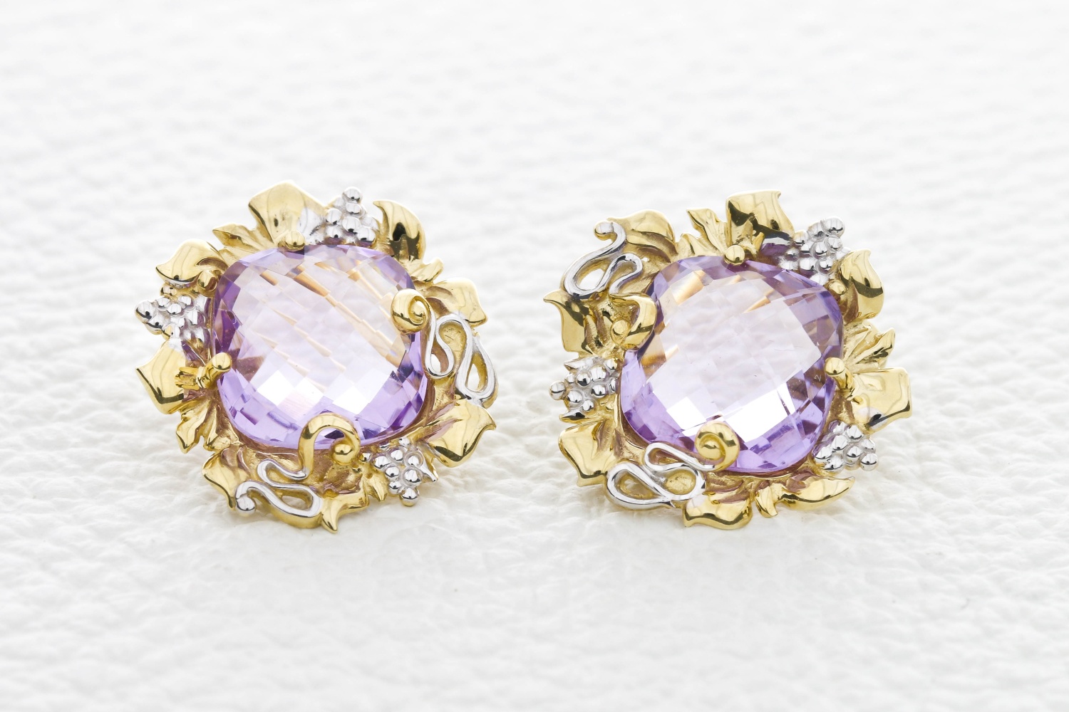 Мастера компании NEWGOLD, приложив всё свое мастерство и искусство, создали для Вас на нашем собственном производстве Серьги из жёлтого золота с 2 аметистами.