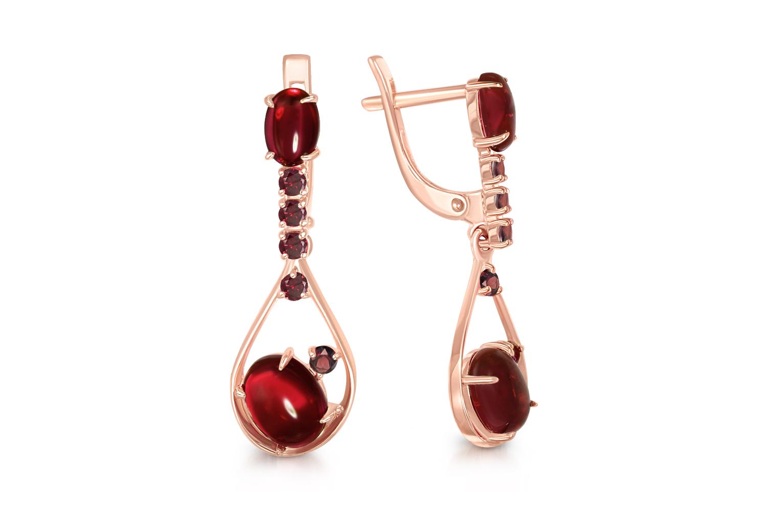 Мастера компании NEWGOLD, приложив всё свое мастерство и искусство, создали для Вас на нашем собственном производстве Серьги из красного золота с 14 гранатами.