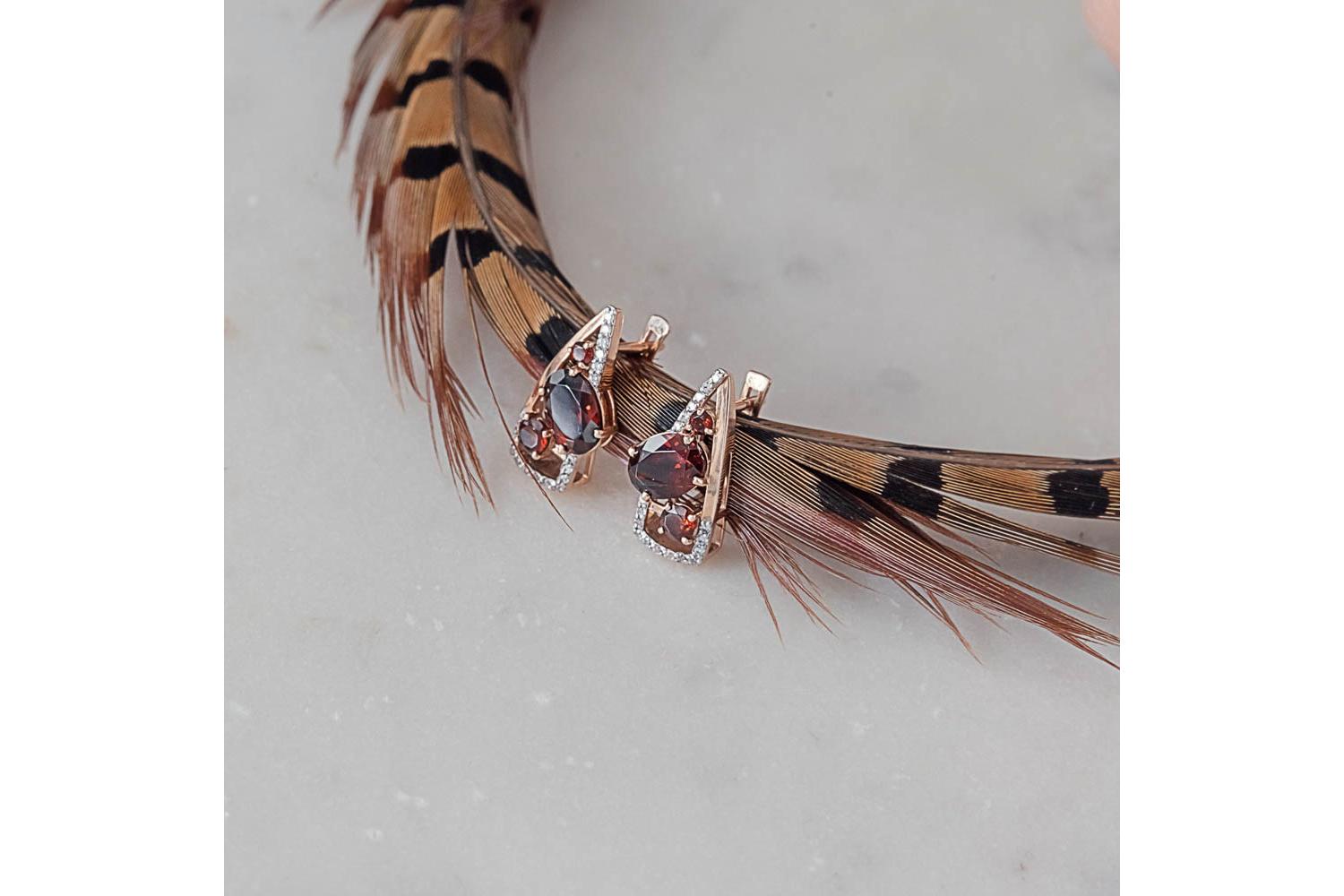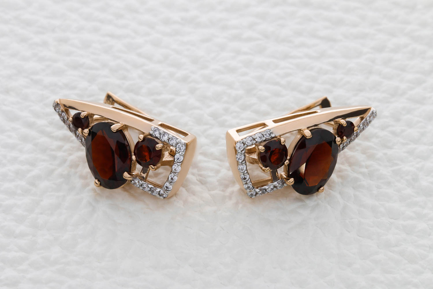 Мастера компании NEWGOLD, приложив всё свое мастерство и искусство, создали для Вас на нашем собственном производстве Серьги из красного золота с 6 гранатами и 36 фианитами.