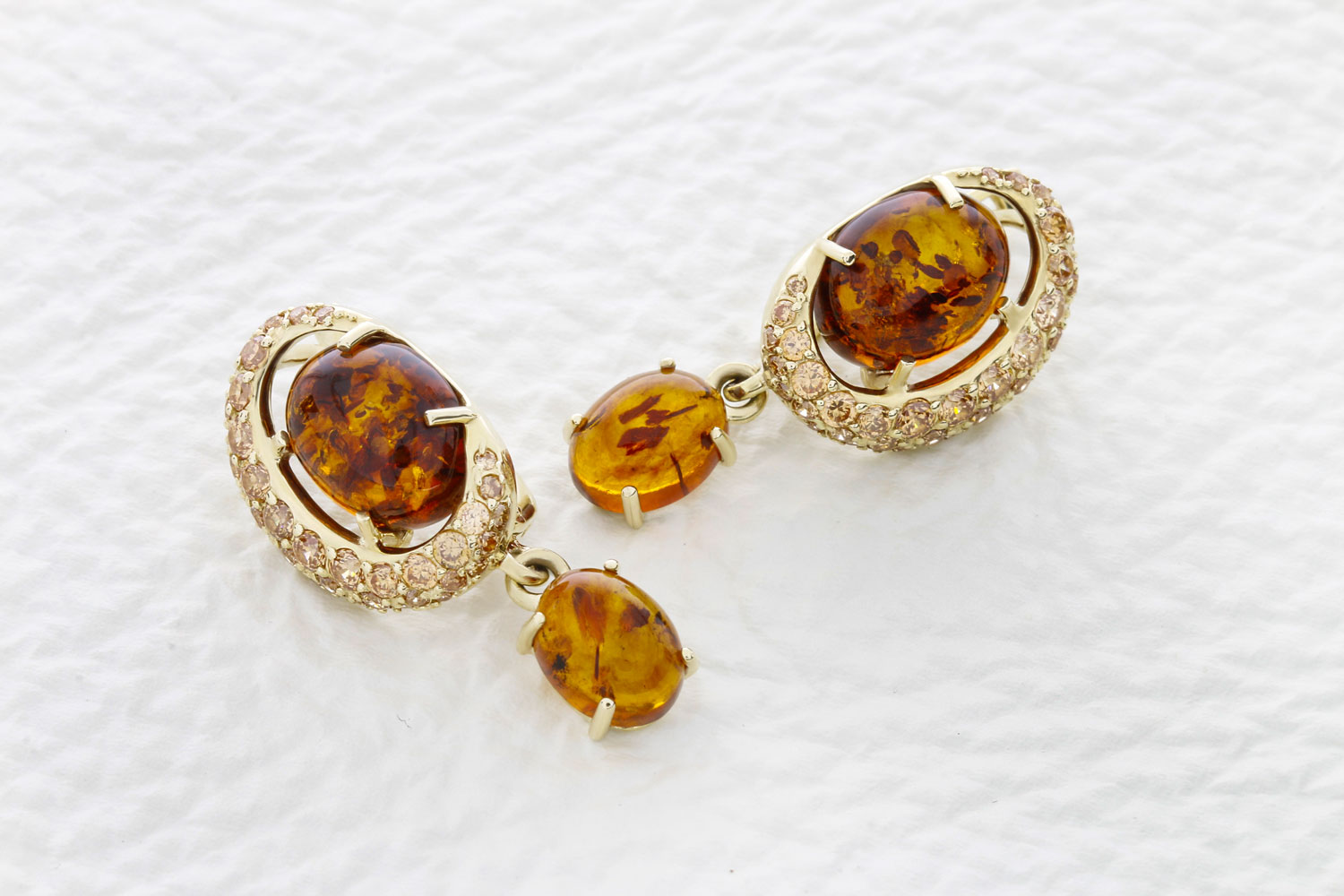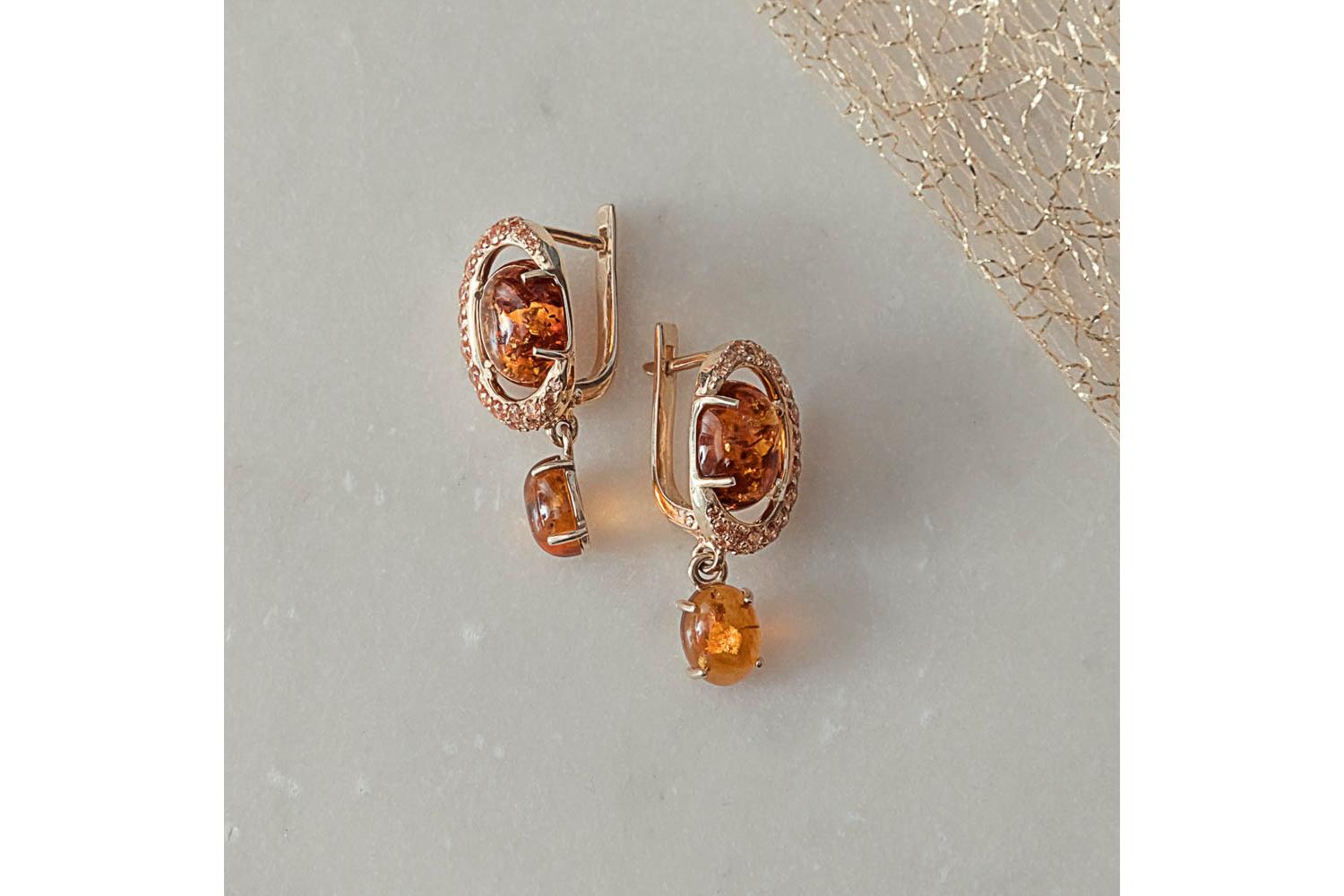 Мастера компании NEWGOLD, приложив всё свое мастерство и искусство, создали для Вас на нашем собственном производстве Серьги из жёлтого золота с янтарём и 74 фианитами.