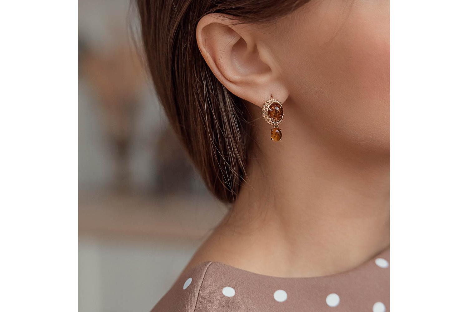 Янтарь натуральный, количество 2 шт., огранка овал-кабошон, размер 10ˣ8 ; Янтарь натуральный, количество 2 шт., огранка овал-кабошон, размер 8ˣ6 ; Фианит коньячный, количество 10 шт., огранка круг, размер 2 мм ; Фианит коньячный, количество 10 шт., огр