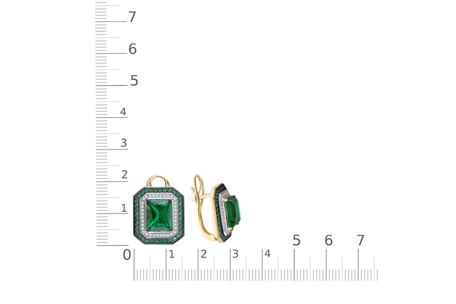 Техникой закрепки камней можно только восхищаться - каждый изумруд и бриллиант сидит идеально, что говорит о высочайшем профессионализме мастера. Общее количество камней - 146 штук (74 изумруда и 72 бриллианта) - создает потрясающую игру света и цвета. Металл представлен желтым золотом с элементами родированного золота, что придает серьгам современный и торжественный вид. Форма застежки обеспечивает надежное и комфортное ношение.
