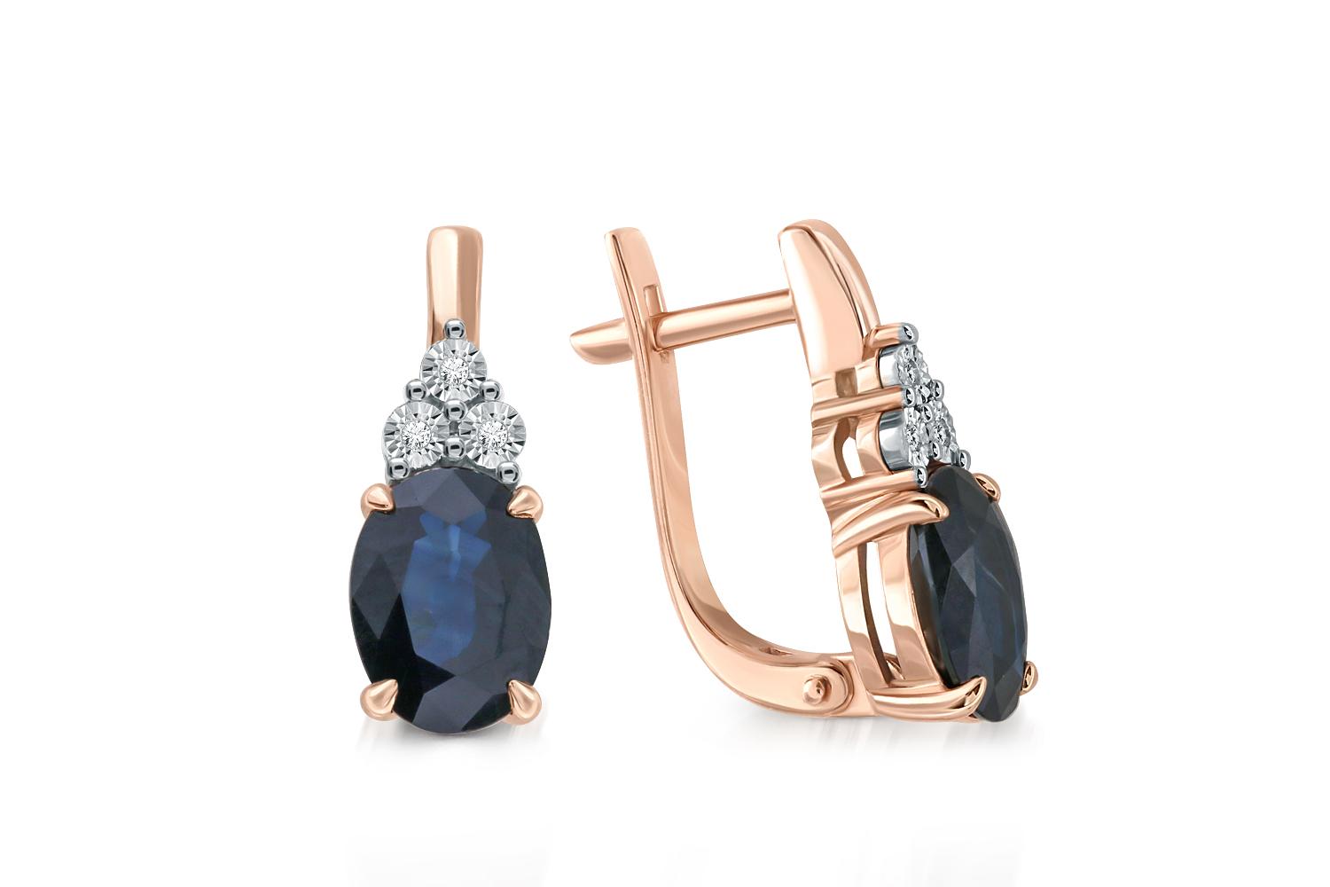 Закажите Серьги из красного золота с 2 сапфирами и 6 бриллиантами с получением в Москве через курьерскую службу доставки напрямую с нашего производственного склада завода NEWGOLD!