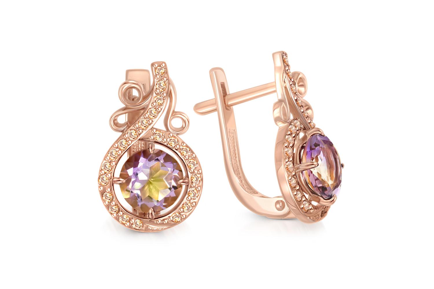 Мастера компании NEWGOLD, приложив всё свое мастерство и искусство, создали для Вас на нашем собственном производстве Серьги из красного золота с 2 аметринами и 44 фианитами.