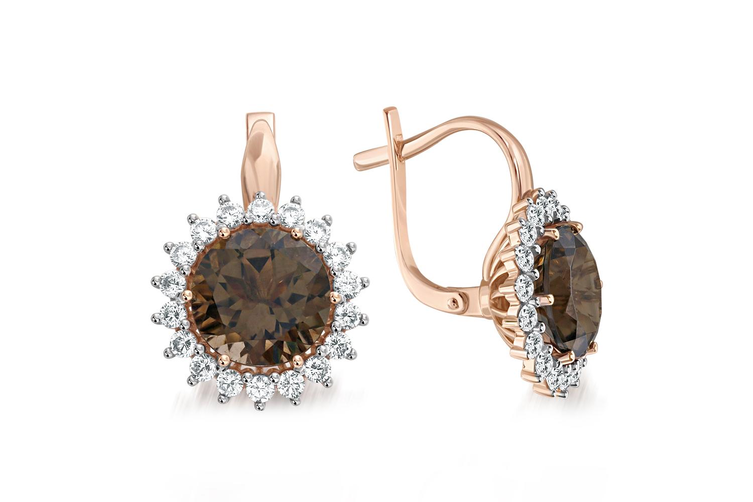 Мастера компании NEWGOLD, приложив всё свое мастерство и искусство, создали для Вас на нашем собственном производстве Серьги из красного золота с 2 раухтопазами и 36 фианитами.