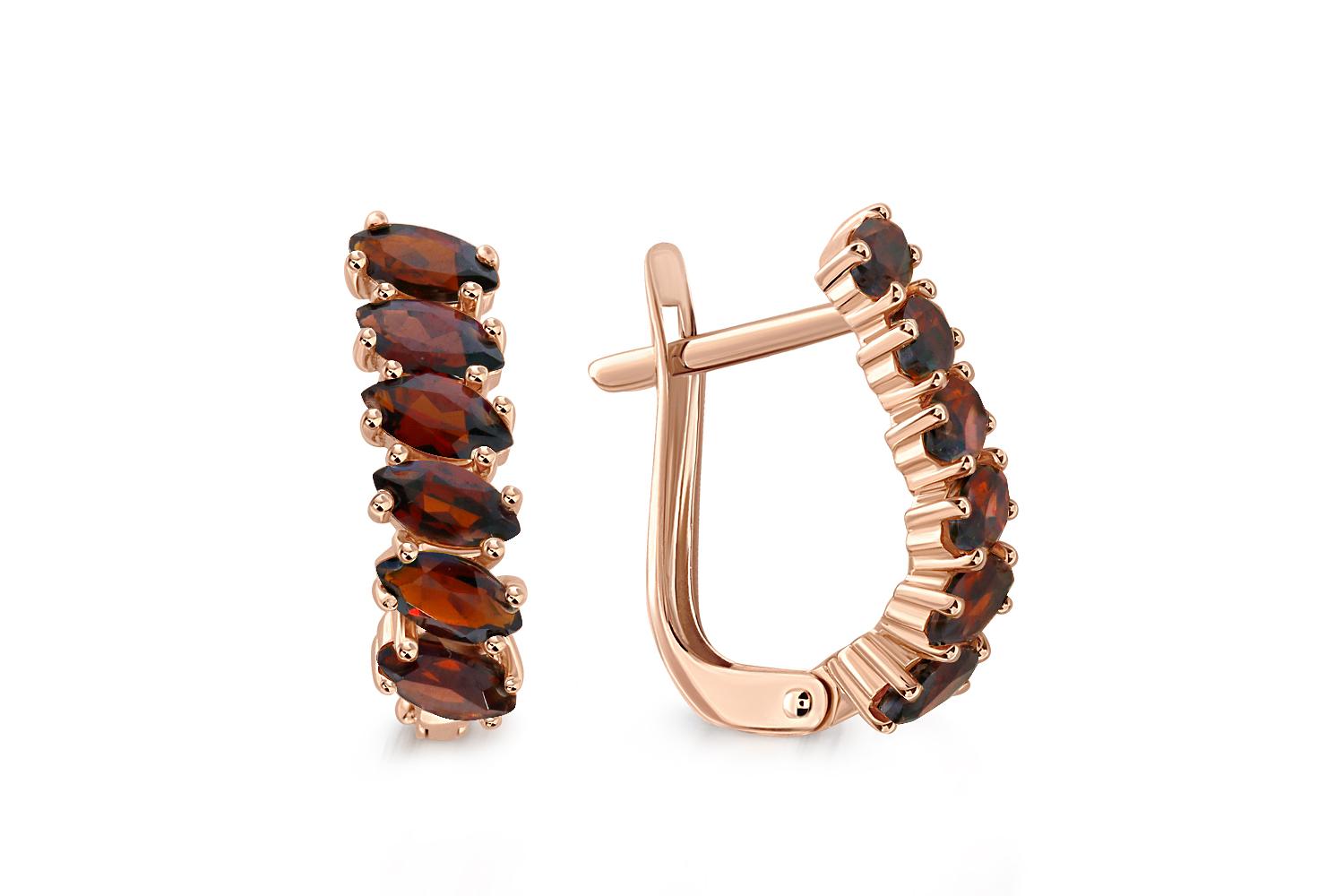 Закажите Серьги Дорожки из красного золота с 12 гранатами с получением в Москве через курьерскую службу доставки напрямую с нашего производственного склада завода NEWGOLD!