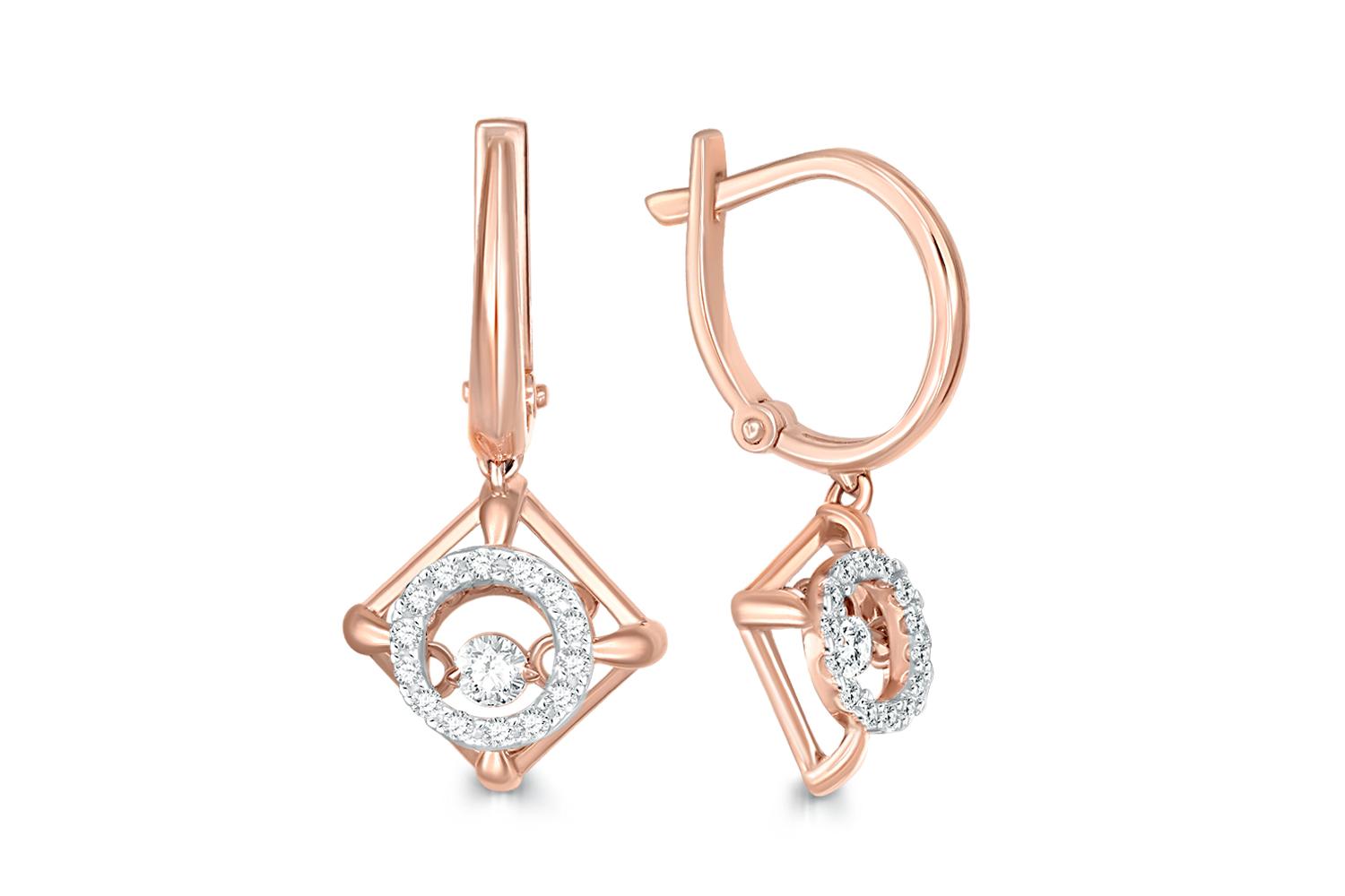 Мастера компании NEWGOLD, приложив всё свое мастерство и искусство, создали для Вас на нашем собственном производстве Серьги Квадраты из красного золота с 30 фианитами.