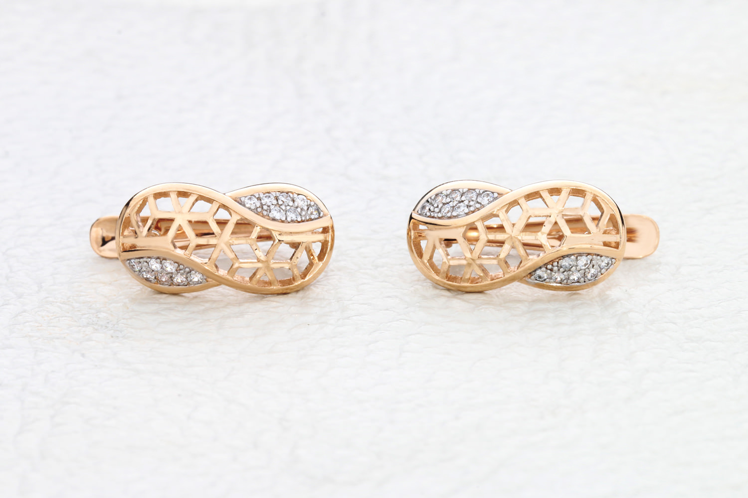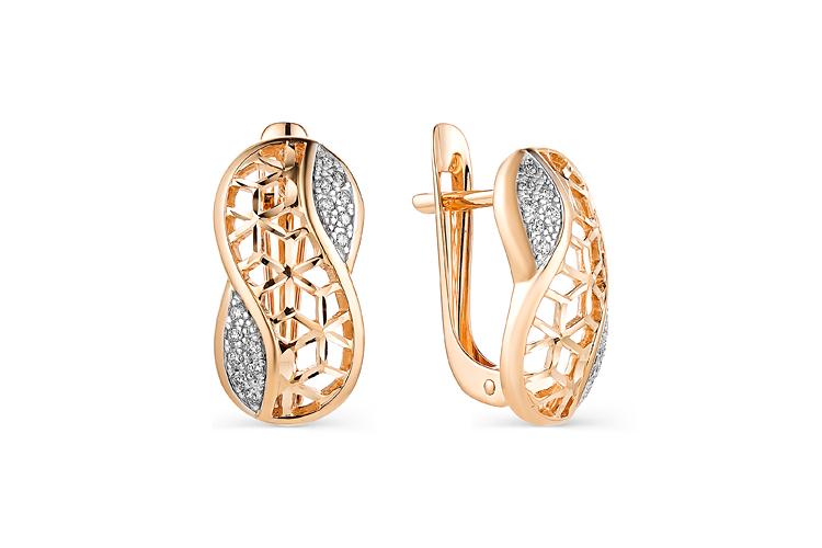 Мастера компании NEWGOLD, приложив всё свое мастерство и искусство, создали для Вас на нашем собственном производстве Серьги из красного золота с 28 фианитами.