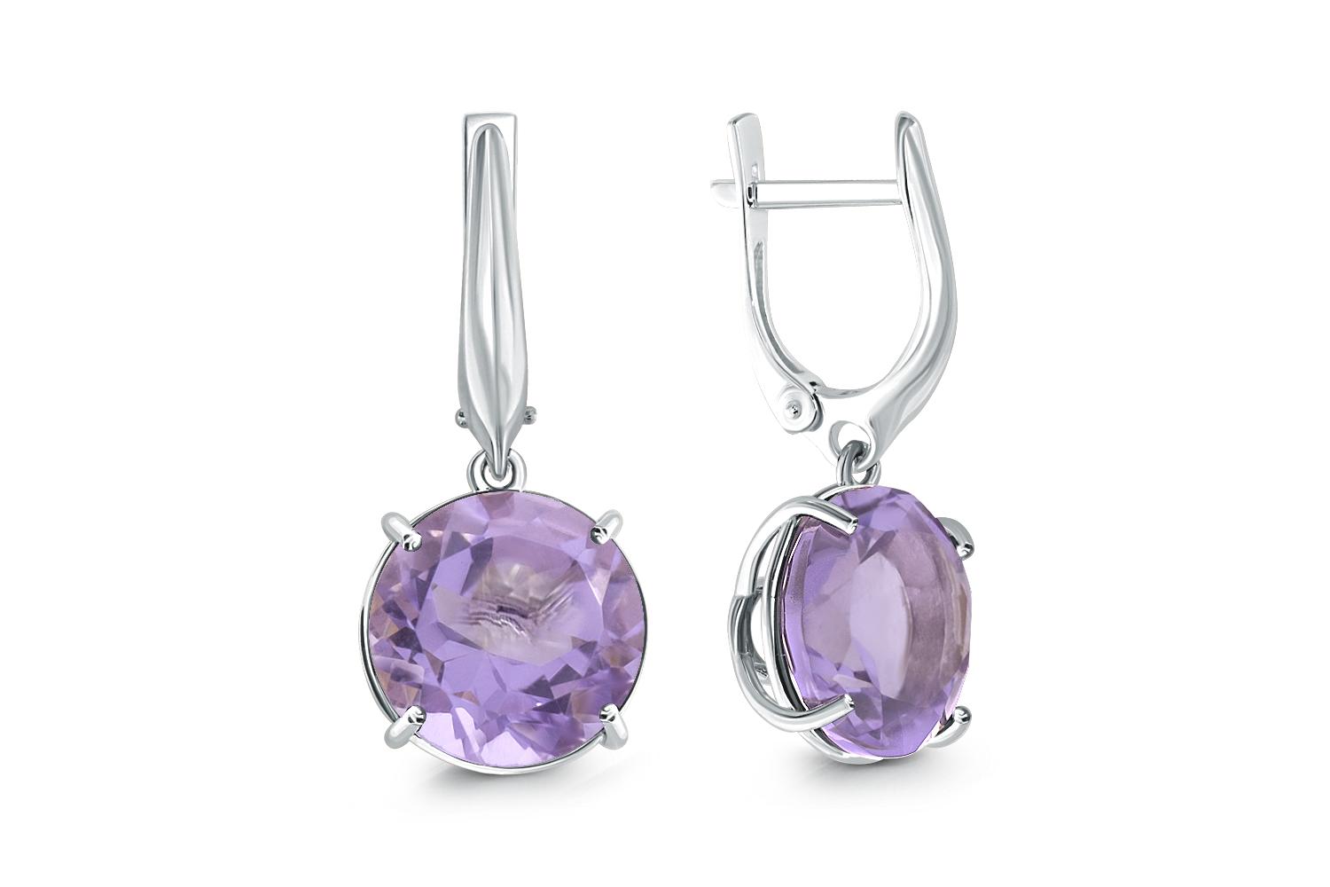 Мастера компании NEWGOLD, приложив всё свое мастерство и искусство, создали для Вас на нашем собственном производстве Серьги из белого золота с 2 аметистами.