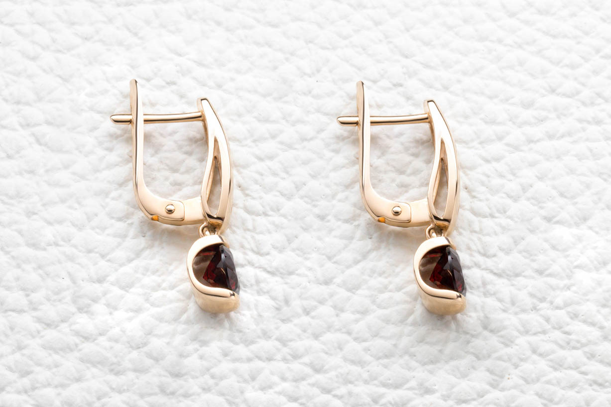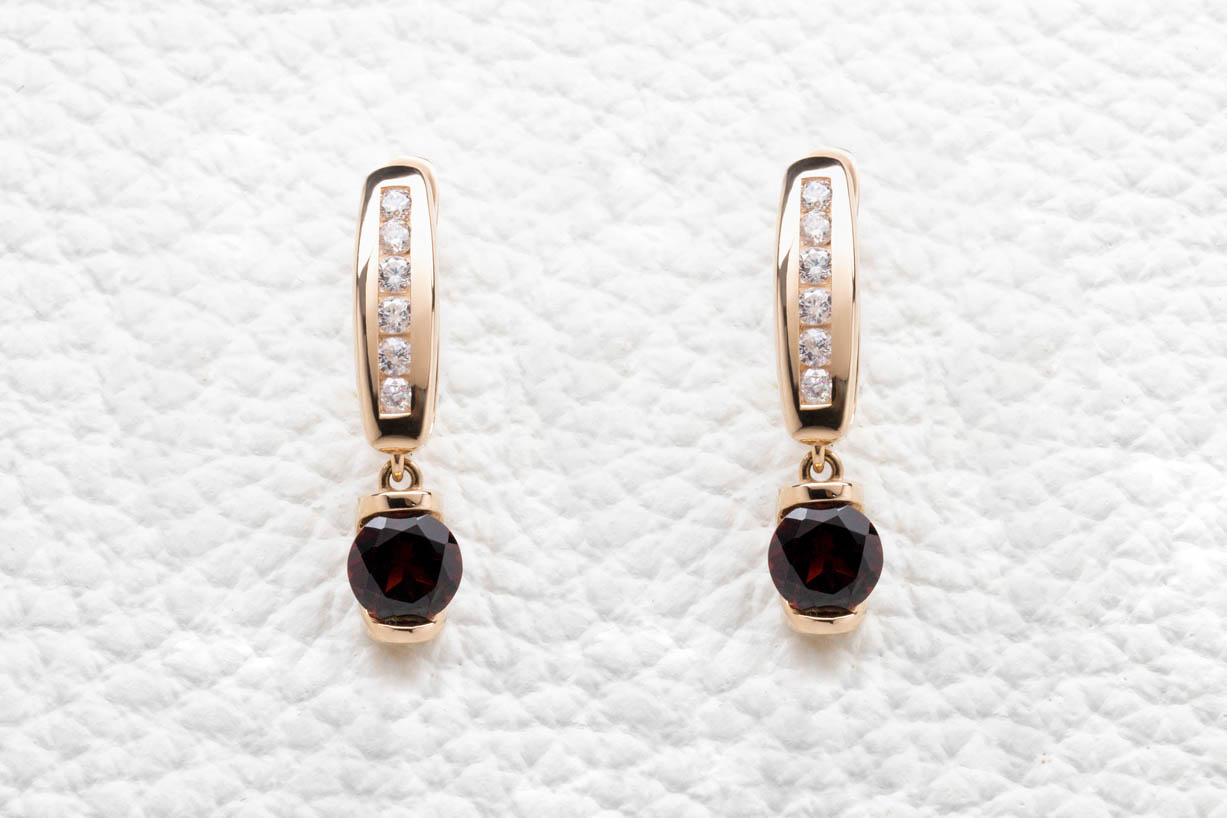 Мастера компании NEWGOLD, приложив всё свое мастерство и искусство, создали для Вас на нашем собственном производстве Серьги из красного золота с 2 гранатами и 12 фианитами.