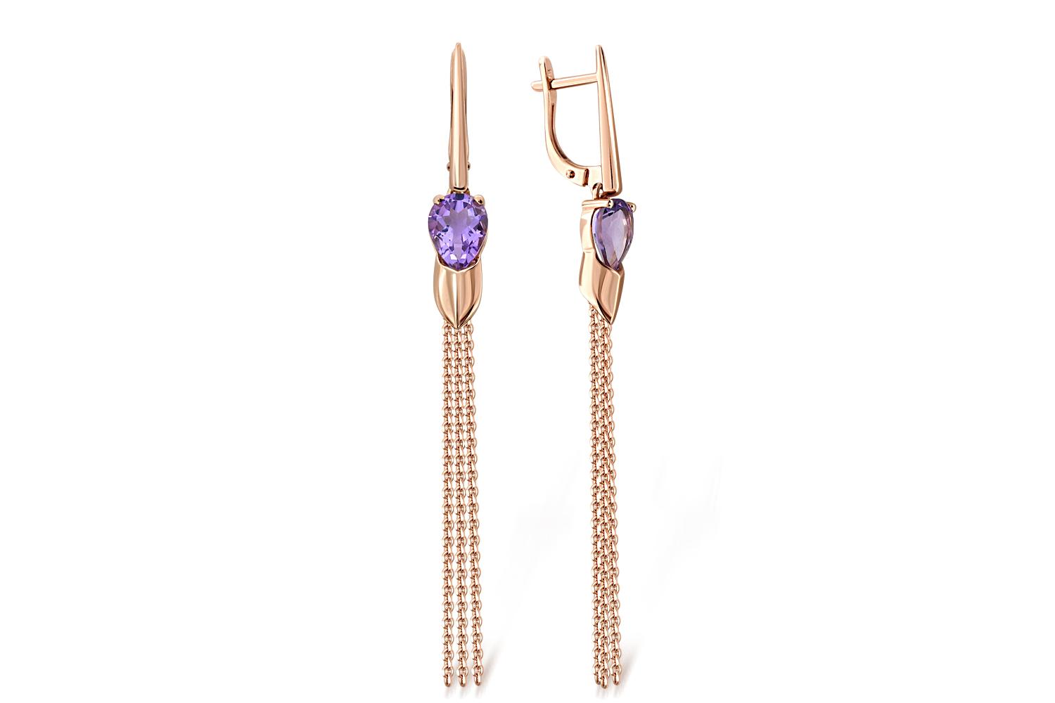 Мастера компании NEWGOLD, приложив всё свое мастерство и искусство, создали для Вас на нашем собственном производстве Серьги из красного золота с 2 аметистами.
