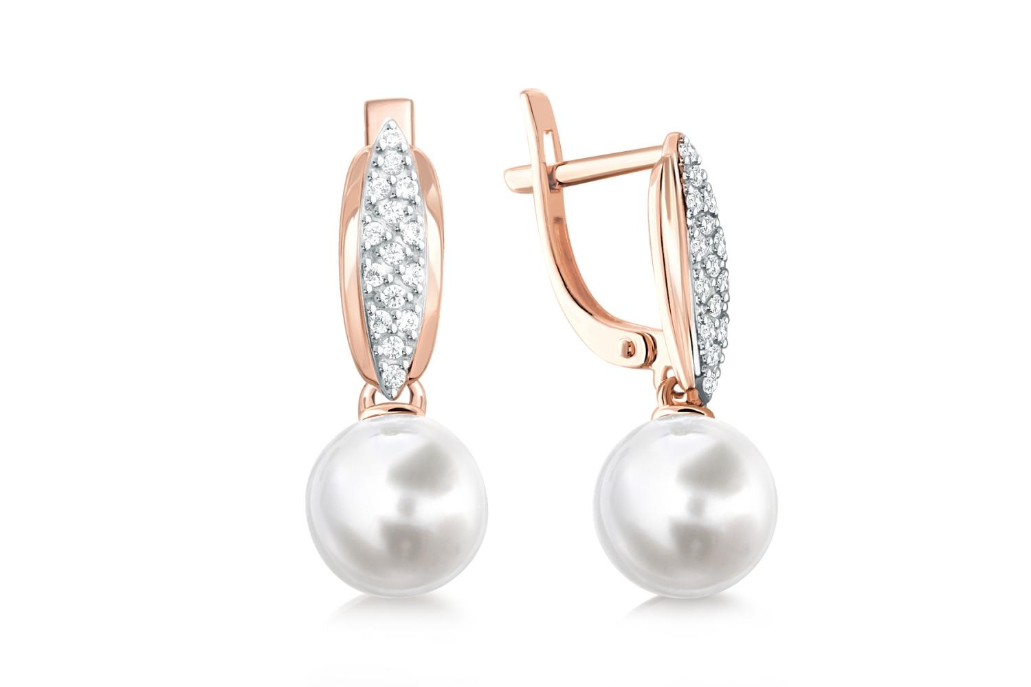 Мастера компании NEWGOLD, приложив всё свое мастерство и искусство, создали для Вас на нашем собственном производстве Серьги из красного золота с 2 жемчужинами и 30 фианитами.