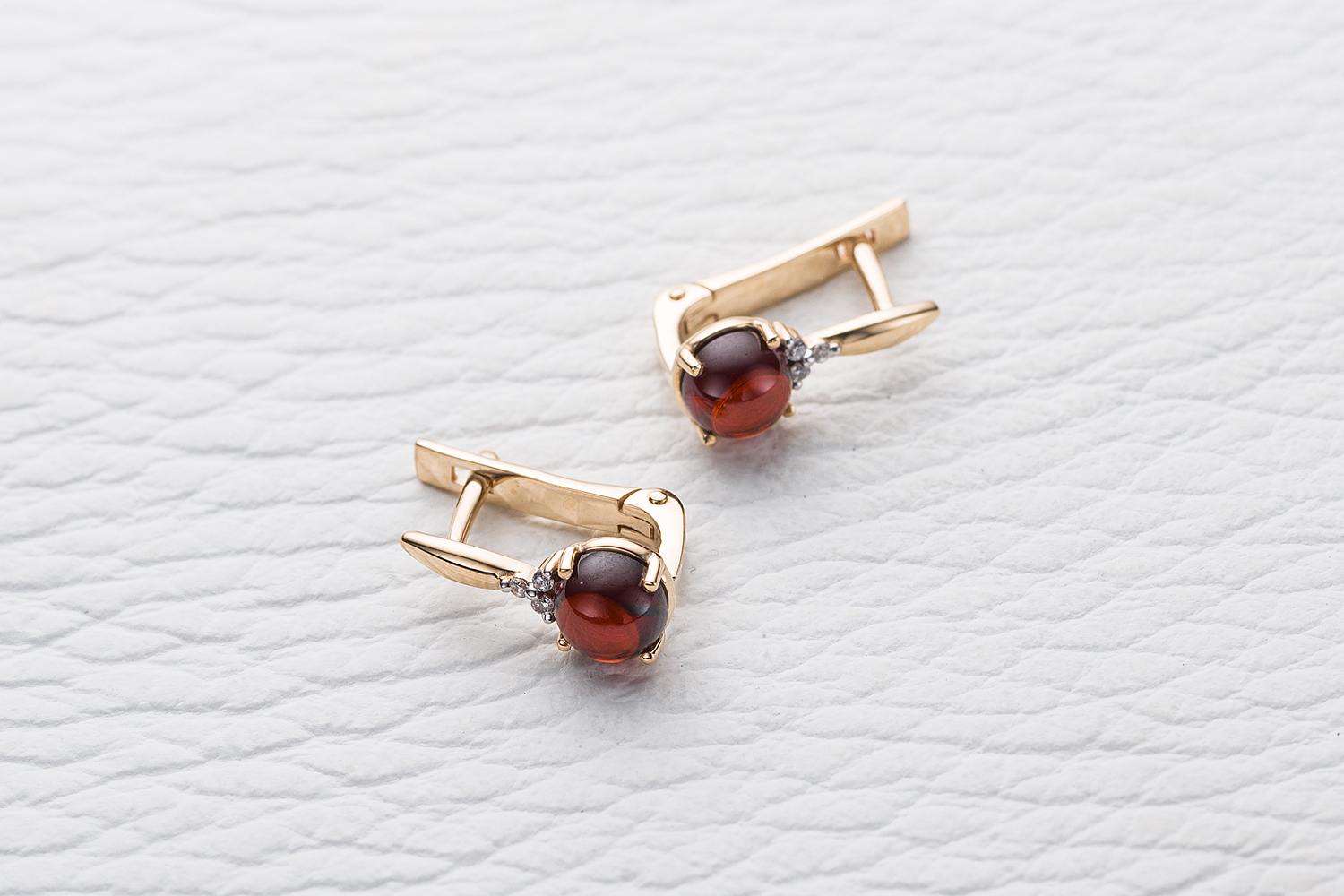 Мастера компании NEWGOLD, приложив всё свое мастерство и искусство, создали для Вас на нашем собственном производстве Серьги из красного золота с 2 гранатами и 6 фианитами.