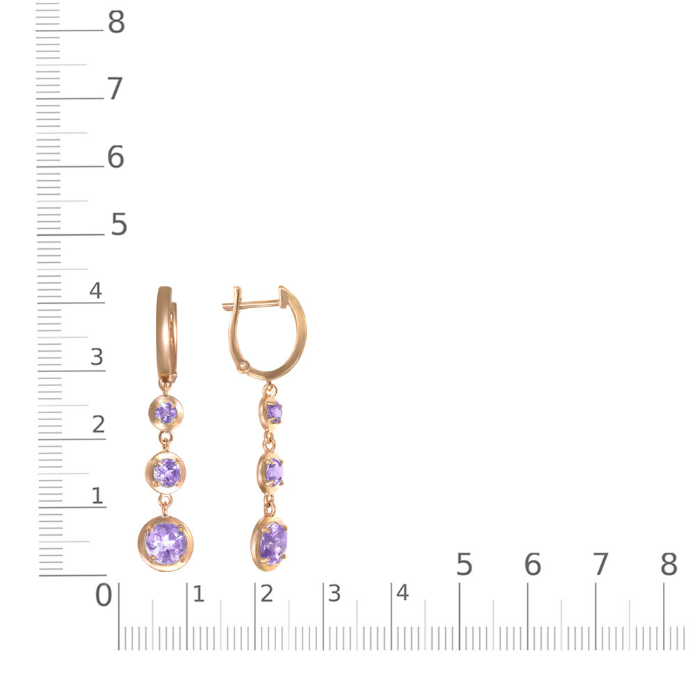 Мастера компании NEWGOLD, приложив всё свое мастерство и искусство, создали для Вас на нашем собственном производстве Серьги из красного золота с 4 аметистами и 2 топазами sky.