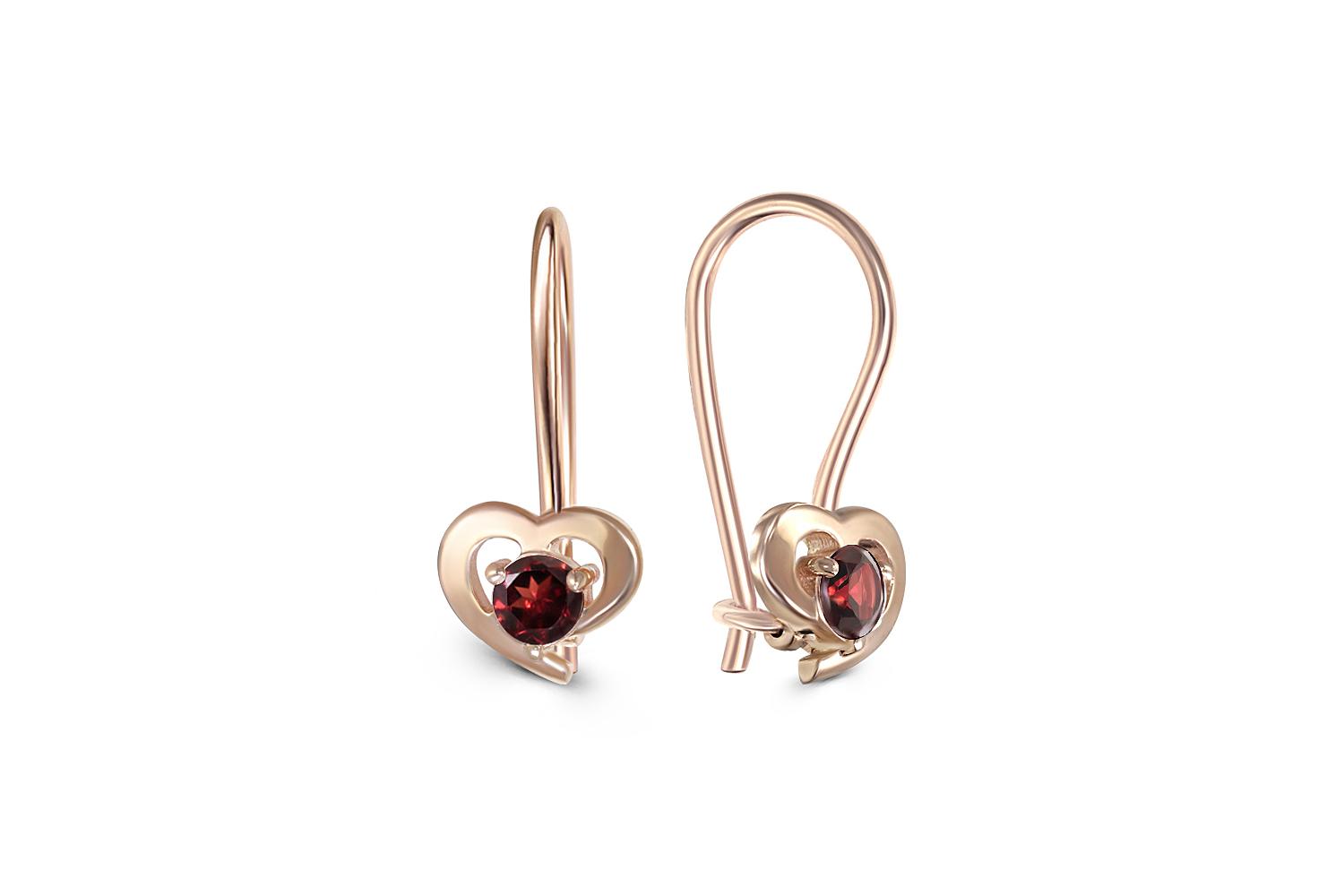 Мастера компании NEWGOLD, приложив всё свое мастерство и искусство, создали для Вас на нашем собственном производстве Детские серьги Сердца из красного золота с 2 гранатами.