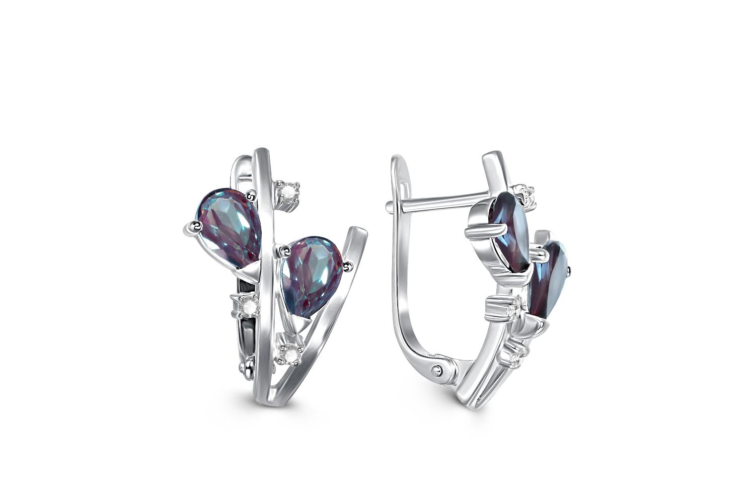 Мастера компании NEWGOLD, приложив всё свое мастерство и искусство, создали для Вас на нашем собственном производстве Серьги из белого золота с 4 александритами и 6 фианитами.