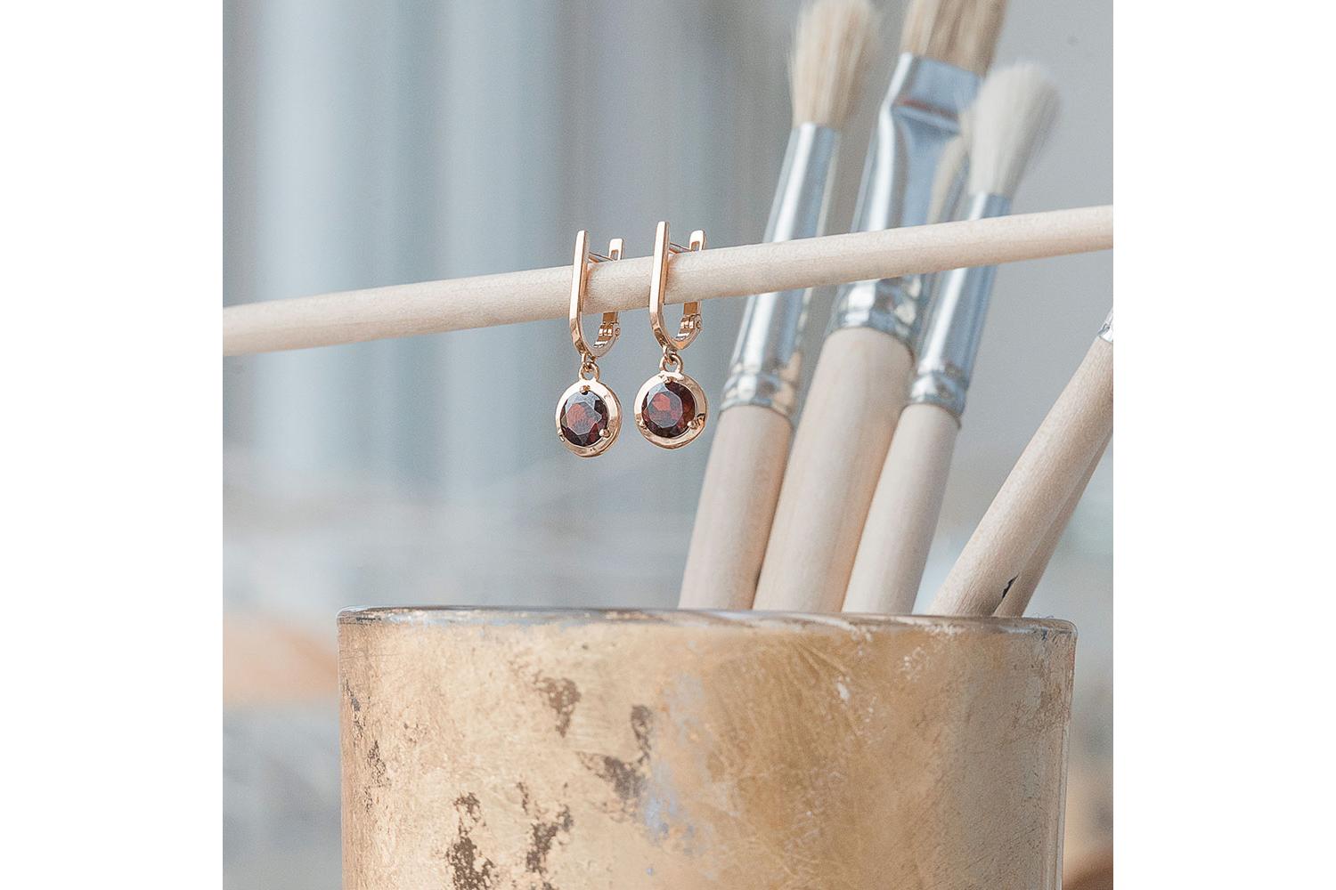 Мастера компании NEWGOLD, приложив всё свое мастерство и искусство, создали для Вас на нашем собственном производстве Серьги из красного золота с 2 гранатами.