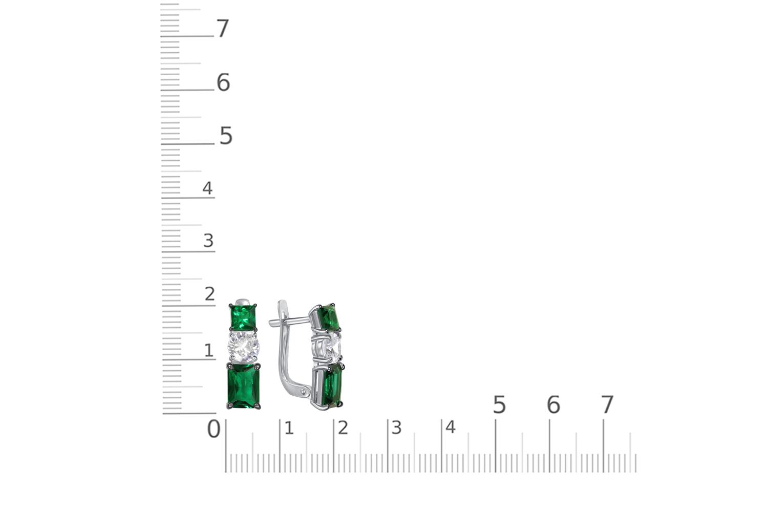 Изумруд Гт искусственный, количество 2 шт., огранка октагон, размер 7ˣ5 ; Изумруд Гт искусственный, количество 2 шт., огранка квадрат, размер 4ˣ4 ; Фианит б/цв, количество 2 шт., огранка круг, размер 5 мм