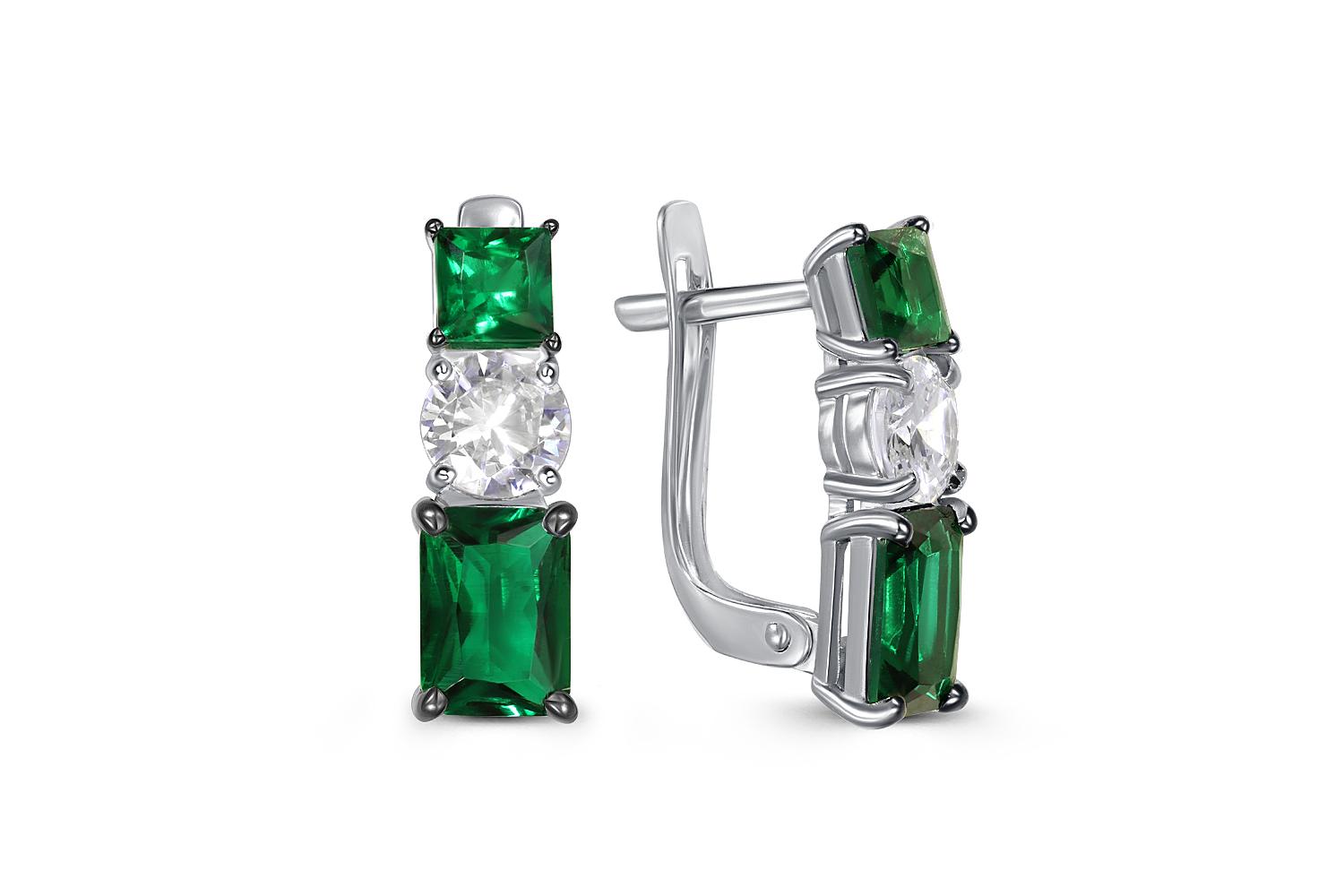 Мастера компании NEWGOLD, приложив всё свое мастерство и искусство, создали для Вас на нашем собственном производстве Серьги из белого золота с 4 изумрудами и 2 фианитами.