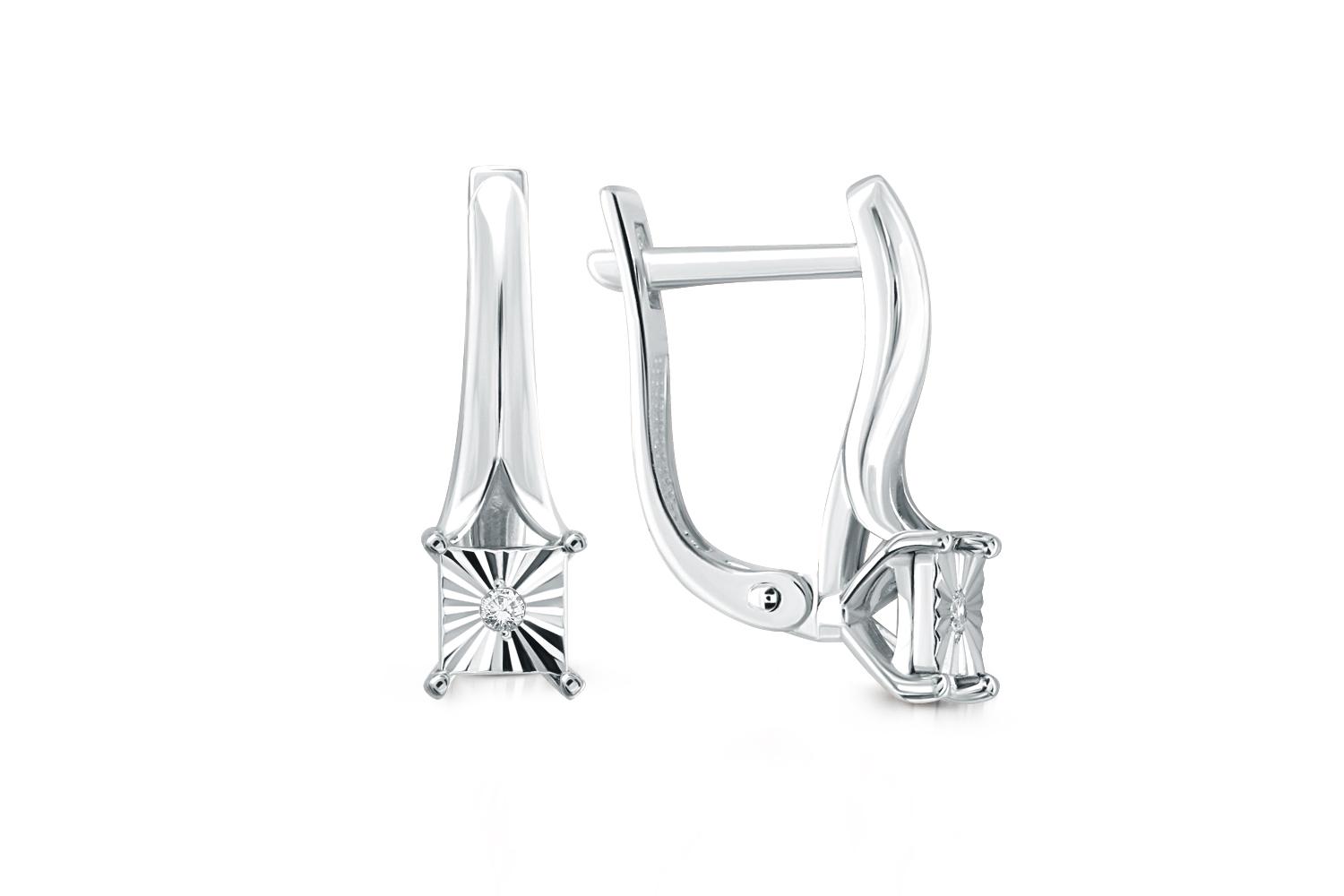 Закажите Серьги из белого золота с 2 бриллиантами с получением в Москве через курьерскую службу доставки напрямую с нашего производственного склада завода NEWGOLD!