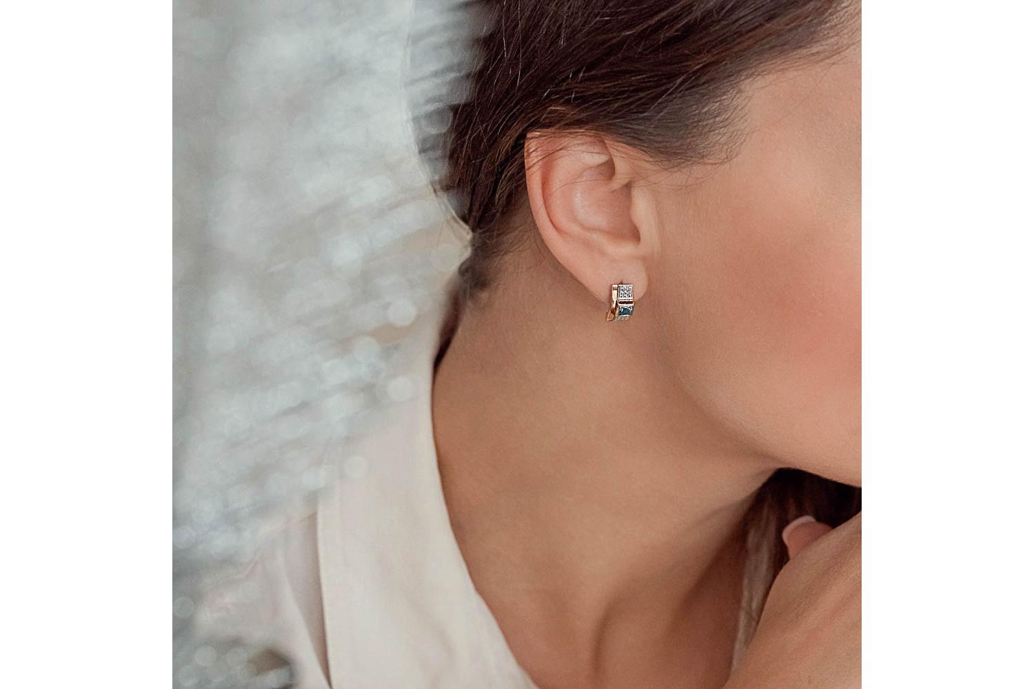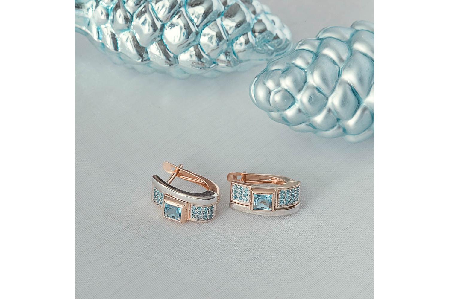 Мастера компании NEWGOLD, приложив всё свое мастерство и искусство, создали для Вас на нашем собственном производстве Серьги из красного золота с 2 топазами swiss и 42 фианитами.