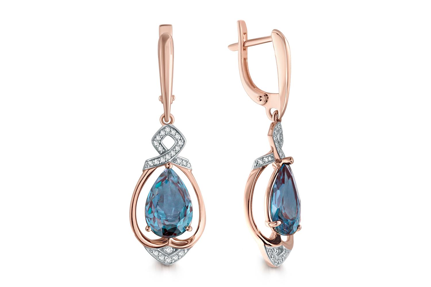 Мастера компании NEWGOLD, приложив всё свое мастерство и искусство, создали для Вас на нашем собственном производстве Серьги из красного золота с 2 александритами и 48 фианитами.