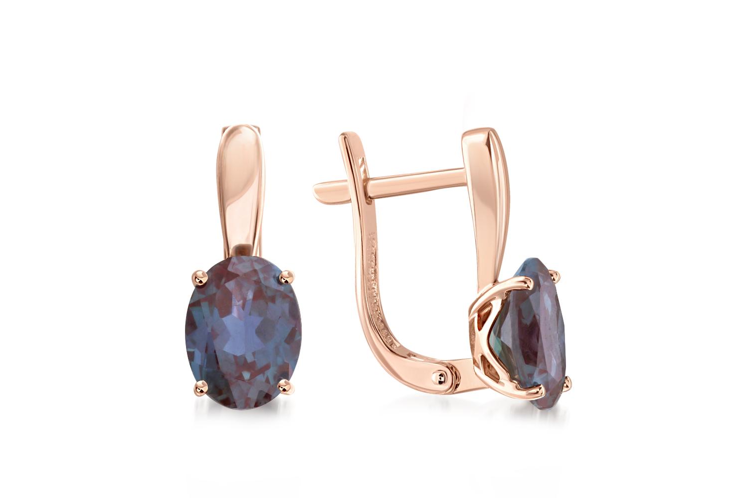Закажите Серьги из красного золота с 2 александритами с получением в Москве через курьерскую службу доставки напрямую с нашего производственного склада завода NEWGOLD!