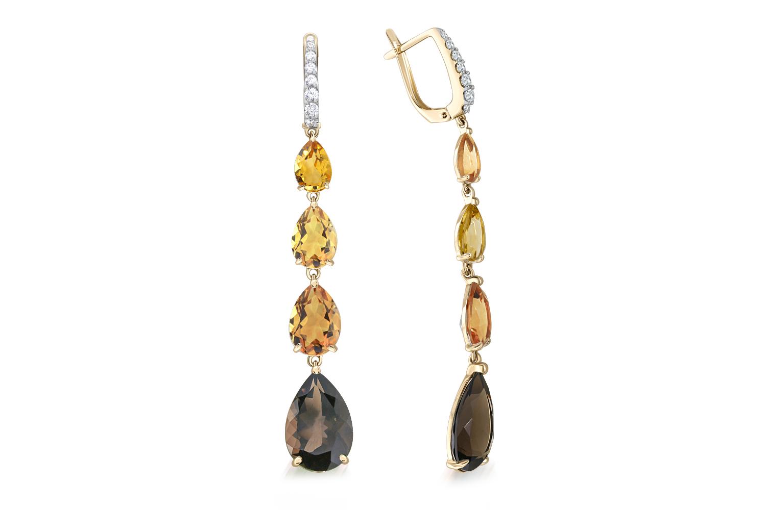 Закажите Серьги из жёлтого золота с раухтопазами, цитринами и фианитами с получением в Москве через курьерскую службу доставки напрямую с нашего производственного склада завода NEWGOLD!
