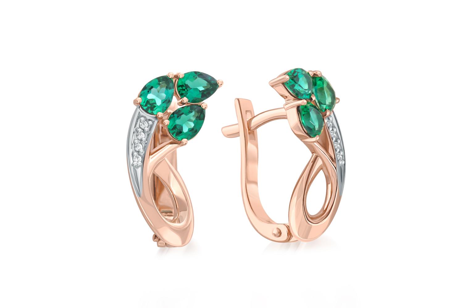 Мастера компании NEWGOLD, приложив всё свое мастерство и искусство, создали для Вас на нашем собственном производстве Серьги из красного золота с 6 изумрудами и 8 фианитами.