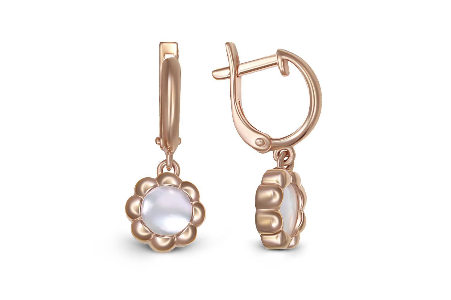 Мастера компании NEWGOLD, приложив всё свое мастерство и искусство, создали для Вас на нашем собственном производстве Детские серьги Цветы из красного золота с перламутром.