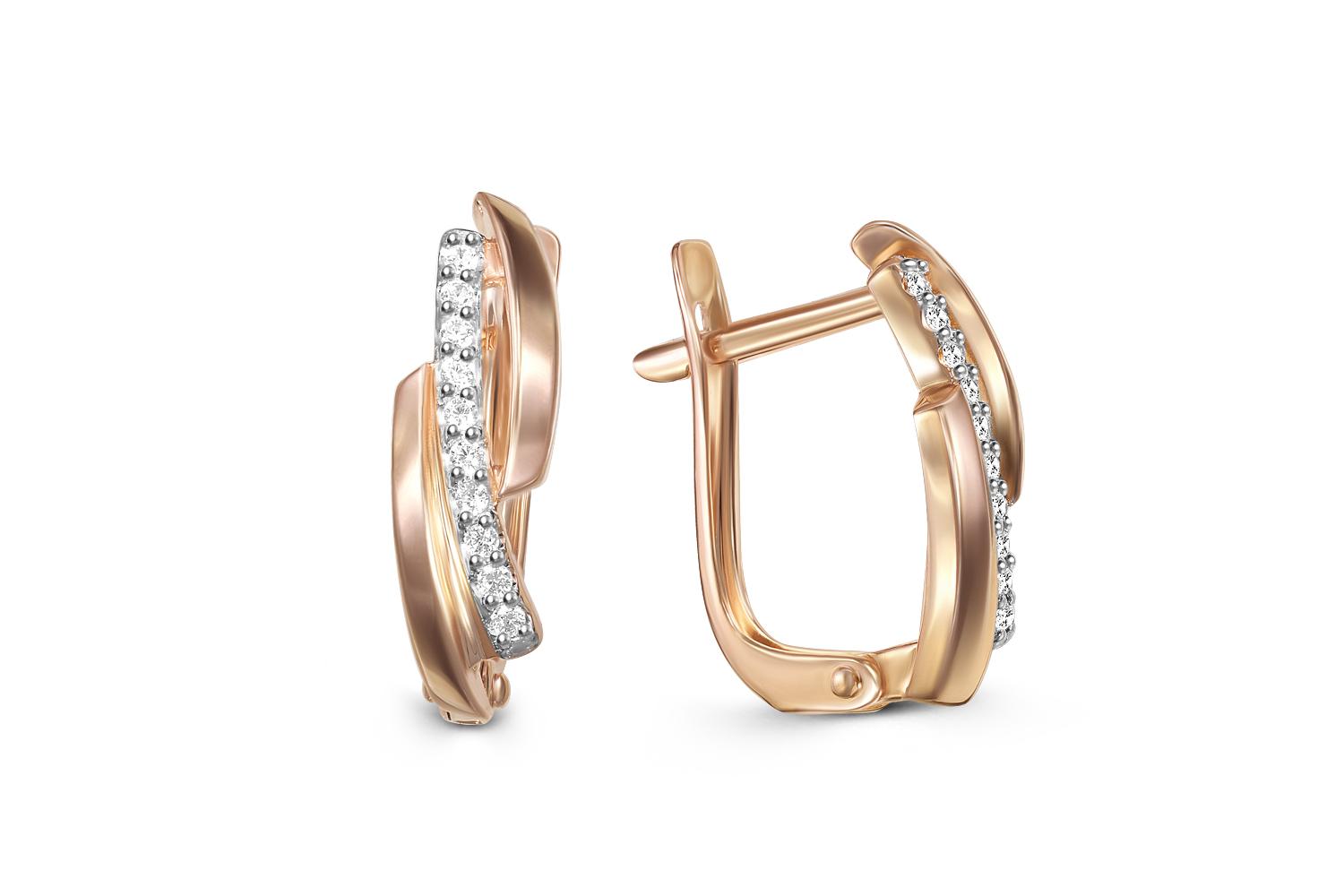 Мастера компании NEWGOLD, приложив всё свое мастерство и искусство, создали для Вас на нашем собственном производстве Серьги Дорожки из красного золота с 20 фианитами.