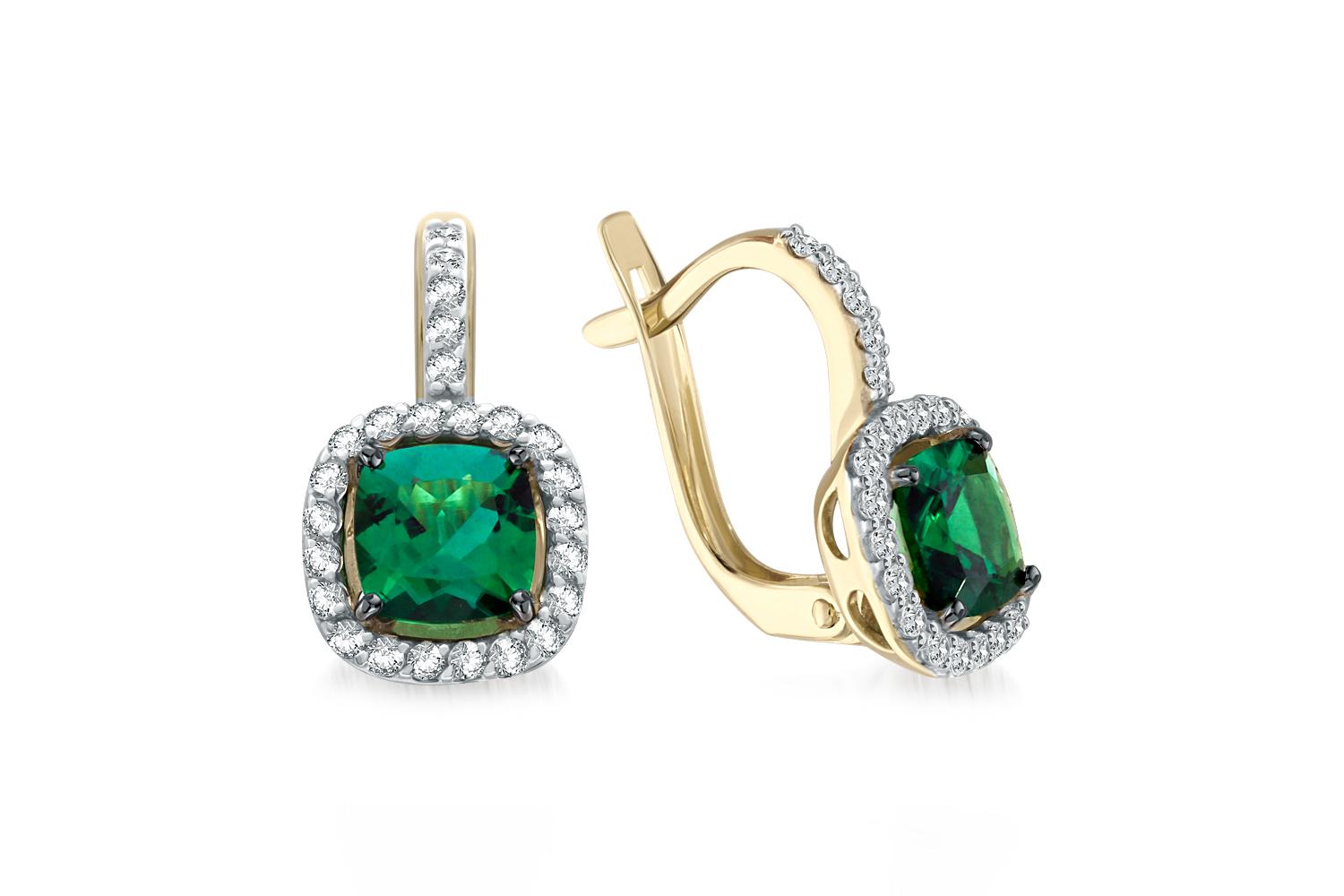 Мастера компании NEWGOLD, приложив всё свое мастерство и искусство, создали для Вас на нашем собственном производстве Серьги из жёлтого золота с 2 изумрудами и 50 бриллиантами.